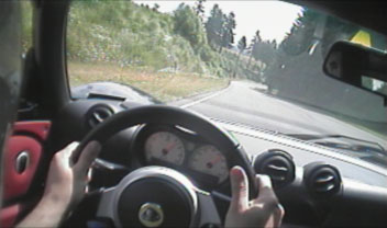 It's actually a pretty cool setup - private day, 25 cars, open track (run whenever, as much as you want). PR is a nice track, too. Many elevation changes in stark contrast to the flatness of PIR. Scary at times, of course - no runoff and plenty of trees. And of course track surface that loves to eat tires. Some bumps as well, ones that upset the car mid-turn if you're not careful. Like this: Overall, a good deal of fun playing on the track occasionally chasing some friends (they were faster but on R compounds - that's my excuse anyway). I only had video on for a few sessions and it started misbehaving towards the end by cutting out in left-hand turns, but I did get this 1:44 lap with only one blackout on tape: The best lap on tape is 1:43 but there's so much cutting out it wasn't worth digitizing. I may have done as well as 1:42 later in the day, not sure. Between the sessions someone pointed out that I had cords showing on left front tire. So a scramble to try and find replacements in time for Friday's trackday at PIR... Eventually ended up ordering 2 new front Goodyears from TireRack. Hopefully they'll get here in time. If not, the Box gets the duty for the whole day instead of just morning. And speaking of the Box - after driving home some 150 miles on the freeway I realised the Box is a MUCH more satisfying car in the real world than the Elise. Sure, the 'Lis is a blast on the track. But faced with freeway miles or around-town errands, give me the Scion any day. Good to have one of each then :) |