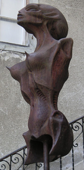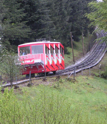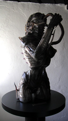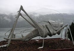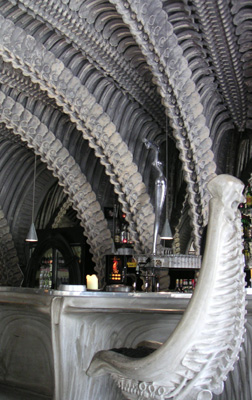 There is a small number of buildings at the foot of it, including a museum containing the works of HR Giger (the guy who designed the creature and sets for the Alien movies). His art definitely leaves an impression, always dark, sometimes graphically erotic in a disturbing kind of way. Across a small courtyard is an Alien-themed bar. Cool but not very inviting. Trying to sit in the multi-vertebraed chairs makes my own spine feel exposed somehow.