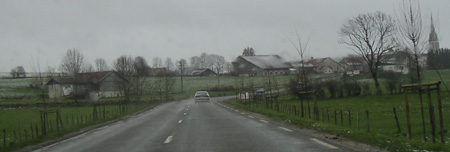 This corner of the world has a look unique to itself, in my experience anyway. Very glad I came to check it out. Then, back to the hotel to relax after a day's drive and contemplate the best route to Switzerland tomorrow... Naturally navigation again proves a challenge, as does traffic, but I make a couple of wild guesses and get very lucky, emerging from a narrow side street directly across from the hotel. Cool. Day 6. Transit to Switzerland. I've been contemplating a couple of different routes - one through Germany, 100% high speed roads (some unlimited), the other through France being about half Autoroute and half secondary roads. The Autobahn route would be longer distance-wise and would use more fuel, but I expected the French Autoroutes to be toll roads so both time and money would presumably come out equal. I decide on the latter, heading through Metz and Nancy almost directly South. I'm pleasantly surprised by the absence of toll booths. On the minus side, there are some radar cameras along the road and at some point I think one gets me (it flashes as I go by doing about 110kph in a 90 zone). So maybe in a few weeks I'll get a ticket in the mail from Hertz. My main hope is that since Switzerland, where the car is registered, is not part of the EU, the revenue machine may stumble and let me fall through the cracks. Time will tell. Once the divided highway ends the secondary roads are narrow, relatively slow and of only modest scenic value. Oh, and it's raining, of course.