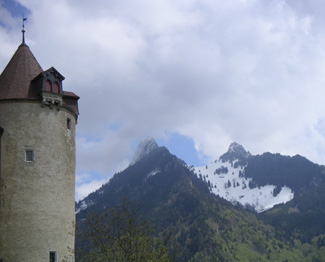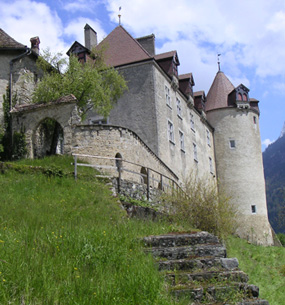 Neat. The road is dry, the traffic is light and my mother is heroically tolerant of my velocity through these twisty bits. After some forty minutes of this, the first stop is Gruyeres, a picturesque medieval castle just off the main road.