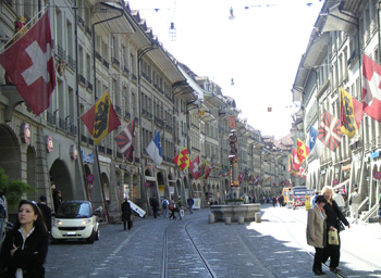 A few more pictures and a snack at a nearby cafe, then onward to Bern. For whatever reason I did not look at the city map before arrival so trying to navigate through it is rather stressful. The streets are very busy, the sun is bright and the whole situation is a bit much. My own fault, of course. Finally we park, take care of the errand and then walk around the city a bit. My initial impressions are still that it's not my kind of place - too big and busy.