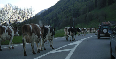 Then back to Leysin retracing the morning's trip. The roads are dry and mostly empty and I proceed at a good pace, taking in the views. Progress is impeded for about 20 minutes by a herd of cows in the middle of the road (just like my final day's drive in NZ, hopefully it's not an emerging trend).