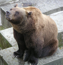 But after some clouds cool things down and we find a quiet spot by the river it gets more tolerable. Some views are actually rather neat. And of course they have the bear pen, where a few rather plump bears lounge around and snack on food thrown to them by tourists.