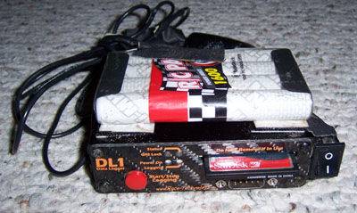 The camera comes standard with a 4G MicroDrive but I've found that it's sensitive to vibration (power hungry, too) so I replaced it with a 4G FLASH card. 45X speed is sufficient to record at full resolution with no problems though it does take a long time to transfer video from card to computer afterwards. Full 4G can take about an hour, or roughly the same as it takes to record it. A faster card is not needed to record but it would decrease upload times. I'm fine with this one. Benefits of the JVC include the compact size, a 10X optical zoom and the ability to take 2 Megapixel stills in a pinch which come out OK. Video quality is excellent (as long as there is enough light, it's low-light performance is pretty poor compared to the Sony). MPEG2 files are easily edited with just about any video program and play directly on any media player, including the DVD player I have hooked up to the TV. But, as anything, it's not without drawbacks. One issue is that there is no composite input so it can't be used with a helmet cam. The biggest annoyance however is an overactive autofocus which occasionally tends to activate with no provocation. I haven't found a way to turn it off and it has ruined more than one in-car video by choosing to focus on bugs on windshield instead of the road ahead. DL-1 datalogger from Race Technology. If you've read any of my recent car and bike entries you've seen the data and how valuable it is as an educational tool. As with many things I ended up making a few tweaks to make it better suit my purposes.