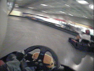 3/14/03 Went indoor karting today with some friends from the M Coupe gang. I've actually done this a couple of times before, and probably will agan. It is a lot of fun and quite difficult to be fast due to the tendency of the karts to slide. They're nothing like the shifter that I run outdoors. But fun nevertheless, and a good way to satisfy competitive urges (these things have BUMPERS ;). A video (13M) illustrates... Sadly, in all the excitement and bumping around my favorite sunglasses that I've had for over 5 years perished... Oh well. They looked like a scene from one of those Mad Max movies, where after a deadly road encounter the screen is filled with some personal item of the victim...