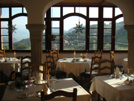 Finally, after some seven hours of driving I found the road leading up to the hotel. And what a road! Very twisty, only 1.5 lanes wide, with lots of blind corners. And regular bus traffic, as I found out. Not small busses, either, but huge tour-bus sized monsters that run regularly scheduled service in these parts. After a bit I got the technique down (expect the bus at every corner and you won't get surprised). Also there are convex mirrors around some corners if you know where to look for them. A VW Lupo caught up with me when I stopped to let a bus through in the other direction, and decided to try and keep up with me afterwards. So I stepped it up a bit, still mindful of my partial incapacitation, but just enough to clear my mirrors of the pesky hatchback - a VERY fun finale to the day :)