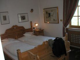 Upon locating the hotel and checking in, I found it to be the best I've ever stayed in, regardless of price. And at €75/night it is an amazing bargain. Check it out on the web at www.hotelturm.it - HIGHLY recommended. Down pillows and comforters, robe/slippers, and even chocolates on the pillow. After the long, hot, noisy and stressful trip it was one of those times when a shower feels like heaven. I forced myself to stay awake until 8 pm local time and then passed out....