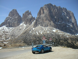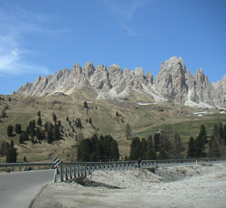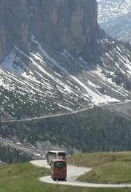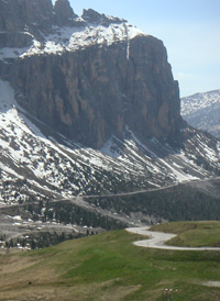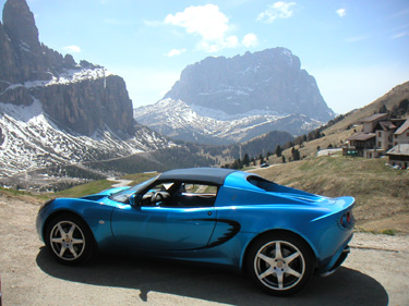 Is it possible to OD on twisty roads? I'm starting to think maybe yes... So back to the hotel and off on another hike in the surrounding mountains. There are some numbered footpaths that are shown on a local map, and which have direction signs on them. Also countless small shrines along the way. There are many small farms scattered on the slopes. Some cattle and what looks like apple orchards. Architecture is a mix of German and Italian, and craftsmanship appears excellent even on minor structures. From my short time in the region it seems South Tyrol is a pleasant mix of German and Italian influences, taking German cleanliness and precision and adding Italian warmth and flair. Perhaps the best of both worlds.... Day 4 A leisurely exploratory drive, this time to the west. Checked out a lake which seemed to be well below its maximum water level. Not a person around except for the proprietors of small chalet at the bottom of a long, one-lane road down the slopes. Via the usual mixture of gestures and the few German words I know, I obtained a bottle of mineral water and then sat on the lakeshore for a while enjoying the quiet. Then back up the narrow first-gear road and down the valley on a flowing two-lane highway. A similar highway runs parallel to the autostrada back north so I took that instead of paying the toll. A small Renault Clio decided to hang with me so we had quite a bit of fun passing trucks and other slower traffic. The Elise does quite well at this, and acceleration is adequate if not stellar (my other vehicles have definitely spoiled me). The Clio driver must have been working that thing pretty hard to keep up like that unless it was one of the hotter versions. I found a road on the map that I wanted to take bypassing a major town. After finding it on the ground, then second-guessing myself, then asking for directions only to 'find' it again, I started on the way up. The mountain looks completely impassable from below, and it is hard to imagine how a road can make its way up. But that it does - one lane wide, countless blind turns and switchbacks. I was apprehensive about what would happen if a car came the other way, but when a couple eventually did it somehow worked out with both parties squeezing off to the side and mirrors passing an inch or so apart. The surface was not always great but OK overall, and I kept up a brisk pace through sections where I could see what's ahead. Came up on a couple slower cars and was all but resigned to a crawl only to have them let me by a few turns later. Cool.