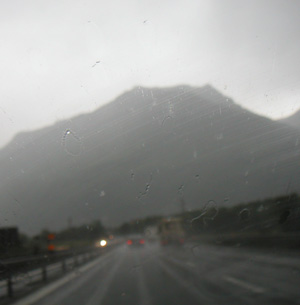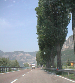 The restaurant in the hotel is also very good and quite reasonable. A full four-course meal for €22. Great food but a bit too much - next time I'll just do a-la-carte. For the most part though I exist on Balance bars and water. Takes a major cost and hassle out of travel - basic fuel and nutrition are taken care of for the duration, and any actual meals that I have are more for the experience than sustenance. Day 3 Figured out how to install the video camera in the car (helmetcam with velcro on the left a-pillar) and went for some taping runs on the roads. Unfortunately traffic was fairly heavy but I did get a few open stretches that were entertaining. Also got some video on the Autostrada on the way back. Hopefully out of one hour of video I'll get enough interesting footage for a two-minute clip... I've learned that just because something FEELS fun doesn't mean it will look exciting on tape. I generally do all of the passing on the roads, although I did let a fast motorcycle by just to watch him through the curves for a while. He turned off a couple kilometers later but it was fun while it lasted.