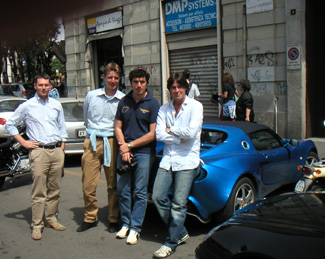 Transit to Switzerland. Descended from the Alps into foggy and humid Venetto plain then headed west. Stopped for gas and the attendant tried to charge me EU20 more than the cost of fuel. Having resolved that issue I continued on only to have my credit card declined by the autostrada toll booth. Wonder if they did anything weird with the card? I'll sort it out later. Driving into Milano I hit some nasty traffic and the Elise did OK in it save for lack of air conditioning. The engine cooling fan worked. I stopped in Milano to have lunch with a group of Italian lotus enthusiasts whom I had met on the Internet - www.cinghialoni.org. We were originally hoping to organize a drive in the Alps but scheduling issues prevented it, so lunch was all we could manage. Still, it was an excellent lunch and perhaps the best Tiramisu I've ever had. Thank you Max and Luca!