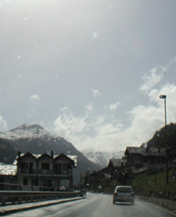 Luca, who is the Italian distributor for Westfield, met me in his Megabusa and led me to the restaurant. It was great to see a Megabusa on the road and follow it through traffic. Wish the Elise sounded like that! This one is set up differently from mine, with no windshield and all kinds of carbon bits. Very cool. Luca is a brave man to drive it with no windshield on the street. They had a track day at Imola coming up on Sunday but sadly I had to sign a paper that the Elise would not be taken on a track and I didn't want to risk it - I'd probably have to buy the whole car if anything happened and certainly lose my €3,000 deposit. It also wouldn't surprise me if there is some kind of GPS logging device in the car somewhere. Haven't looked for one yet. After lunch, onward through St. Bernard pass and into Switzerland. On the approach to the pass I encountered the first rain on the trip. The Elise does not leak (in fact at speed the rain stays out even with an open window). The cooler air was a welcome relief. The Swiss border guards spent a lot of time asking me questions and scanning my passport and driver's license. I guess an American arriving from Italy in a rented Lotus with German plates is not something they see every day. After that, a VERY long tunnel and a descent into the valley. Some guy in a Golf GTI thought he could stay ahead of me and was taking up two lanes in the turns. Passed him anyway. Wimp. I wasn't even trying that hard. A few kilometers later when I hit a long line of traffic he caught up and was riding my bumper for a while at 40 kph. Whatever.