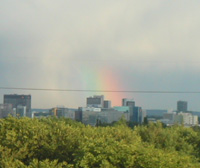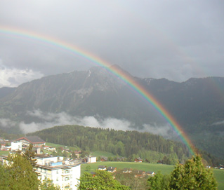 The Elise is a collection of squeaks in the turns and rattles on broken pavement - this with only 4,000 kilometers on the clock - although on good surfaces it still feels solid and is rattle-free. I must say that perhaps Lotus was wise not to bring this version to the States. If I had paid $40K for THIS car I'd be disappointed. My S190 is one thing - it's a race car and lack of refinement is expected, compensated for by sheer thrill when used with vigor. Somewhat lacking in the latter, it is harder to come up with an excuse for the former in the standard car. Certainly hope the drivetrain is more exciting both viscerally and aurally in the US version. It's not that I'm not enjoying the experience, but I wanted to be overwhelmed. And I'm not. In fact I suspect I'd enjoy this more in a Cooper S... Finally, arriving at my mother's place in Leysin felt almost like coming home - at least it was familiar territory. Turns out I'll have a separate apartment to stay in, too, which is cool. A bright double rainbow greeted my arrival. Time to take a small break from all the driving.