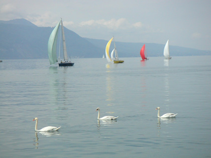 Also in Vevey for the first time on this trip encountered another Elise (also an S2). A dark blue one. Darker colors definitely suit the car better. We waved to each other and went our separate ways. The Elise has an oil leak. Oil is pooled on the undertray and is spraying out the back at speed, at first left side only then both. Just like mine did (I never traced my leak and it eventually went away, or so it seems). After discovering the problem I checked the oil level and it appears OK. Can't tell where it's coming from. I thought maybe the gearbox but it doesn't have the distinctive gear oil smell. I'll just have to keep an eye on it.