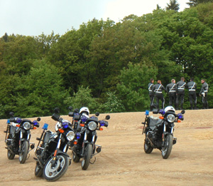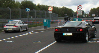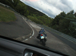 On the way back I stopped at a parking area overlooking the track. A bunch of motorcycle cops were hanging out and watching cars going through the curves. On most weekdays the ring is used by various manufacturers for testing. I saw a few new 5-series scream by, followed by a VW Eurovan driven at ridiculous speed. Next were Cayenne, X5 and Touareg squealing through the turns nose to tail. Pigs on the wing? Also saw a disguised Mercedes prototype which looked like a small SL - probably the next SLK.