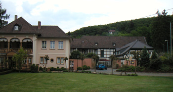 I buy a 5-lap pass and step it up a bit. Towards the last lap I'm getting some degree of comfort, although I still rely on Ed's reminders on the line and when to shift - the car is so quiet it's hard to know when you're approaching the 6K RPM redline. While I'm traveling at nowhere near Ed's pace, I do manage to reel in and pass a few slower bikes, a WRX, a couple Porsches and an MGF, not to mention a bunch of rather more pedestrian machinery. Not too bad for a first-timer in a lowly 1.6L hatchback. Of course about just as often faster people go by me instead. No surprise there. But I was able to keep the M1 in sight for a number of turns... An interesting thing we notice is that under hard braking or cornering the car turns its emergency blinkers on, then turns them off a short time later. Guess it's not used to this kind of driving ;) Around 5 PM more people start rolling in and I'm getting a bit tired - so I say goodbye and many thanks to Ed and head out in search of my next hotel a couple hours away. It's just as well that I didn't drive the Elise on the Ring. It is not a terribly forgiving car, and the Ring is a very unforgiving place. Also, the oil leak continues although the engine oil level is still OK.... My recommendation to anyone who wants to drive there is to fly into Frankfurt or Luxembourg, rent something simple though preferably with a 1.8 or larger motor, and enjoy. It takes dozens of laps before one can become comfortable enough with the track to be able to usefully exploit a performance car here, and you can actually go faster sooner in a more forgiving and less powerful car. Just don't ever mention the Nurburging to the rental company and make sure their contract does not call it out by name either. It is a public road so all insurance applies, but some companies specifically exclude Ring usage. I located the hotel without much difficulty. It is an interesting place - but more on that tomorrow. My room is pretty small and a bit musty, but it's clean, relatively inexpensive (same as hotel Turm which by being a good deal nicer gets the top lodging bargain crown for this trp). A quick stroll into town then a vodka at the bar and back to the room to type up the day's experiences while they are still fresh. The Nurburgring was definitely the climax of the trip, so the remaining 3 days here I will just unwind and explore the nearby countryside....