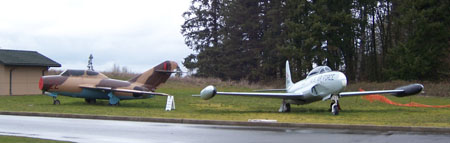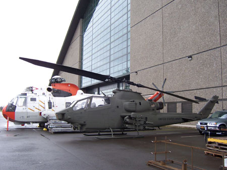 03/21/06 Looking to put more miles on the Mini before Friday I've been trying to come up with some interesting destinations and remembered that I've been meaning to visit the Evergreen Air Museum in Mcminville. It's about 30 miles from Portland, pretty much in the middle of nowhere. And somehow it's a very Oregon thing - a lot of amazing stuff right where you wouldn't expect it. Howard Hughes' Spruce Goose is on exhibit, along with an SR71, a Titan missile and a whole lot of other stuff. Every year I keep wanting to go check it out and it just never happened... So today I decided this is it and just went. The drive there is uneventful and kind of boring, taking a little less than an hour. The museum buildings sit by themselves (only one is open, the other one seems to be still under construction). I take a stroll around the outside first, to see what's there. The sight behind the main building is particularly curious with a Cobra sitting in the parking lot amidst cars, piled up parts and equipment. Like somebody just parked it around the back and went to grab a bite at the cafeteria.