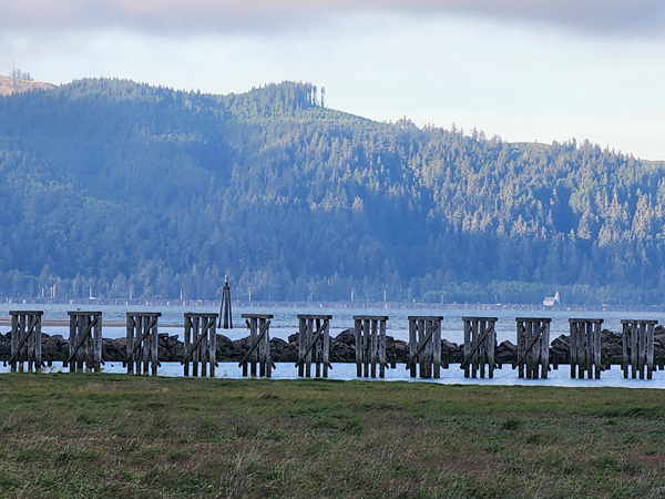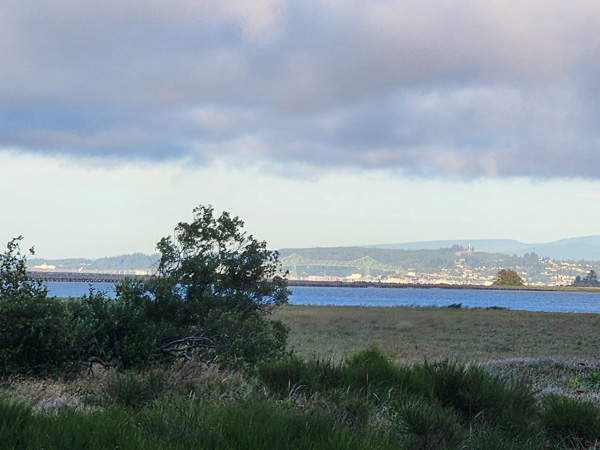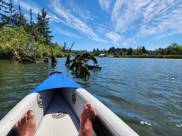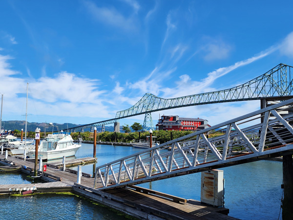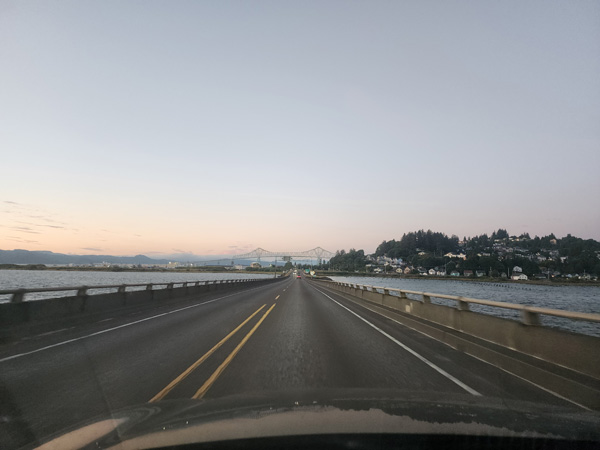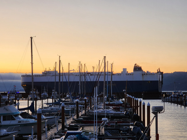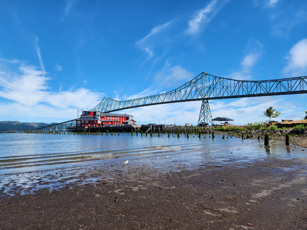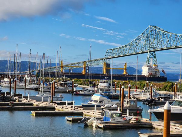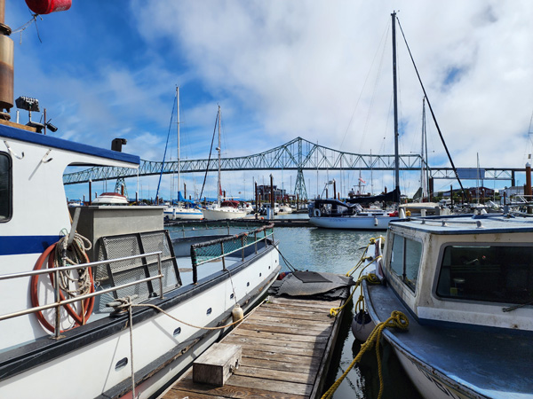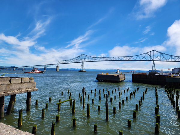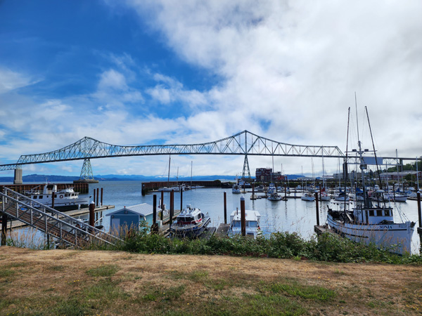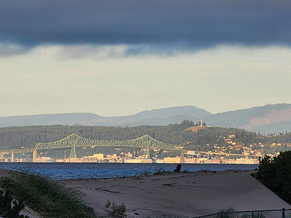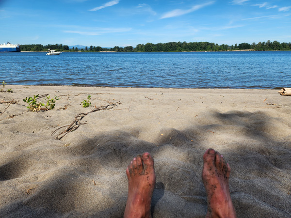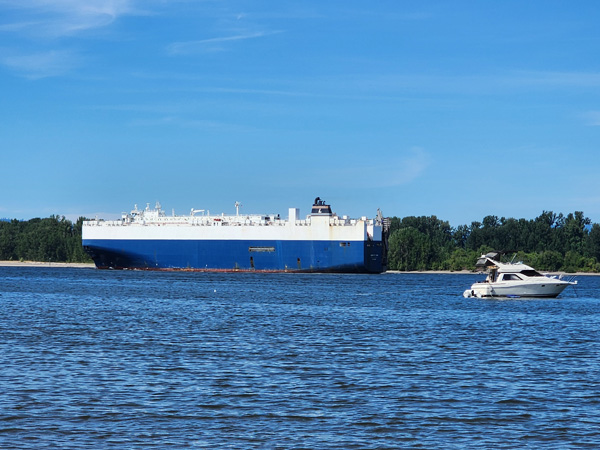 7/15-7/16/2023 A simple two-night getaway to Astoria. Just because. Last time I was here was three years ago, as part of a more extensive trip (page 17 of the travel section). I had noted to myself back then that I would like to explore the area more. Guess now is the time. I'm also bringing the kayak, as there are many places to paddle. I booked the same hotel as last time, the Astoria Riverwalk Inn, because I really liked its location on the marina, the views from the room, and easy access to everything. Plan is to drive down Saturday, stay Saturday and Sunday nights, then Monday morning drive to work (a 2-hour commute but doable). Heading west on 30, Sauvie Island is on the way so I stop for a swim at the beach. There is a large car carrier ship on the way out to the ocean.
