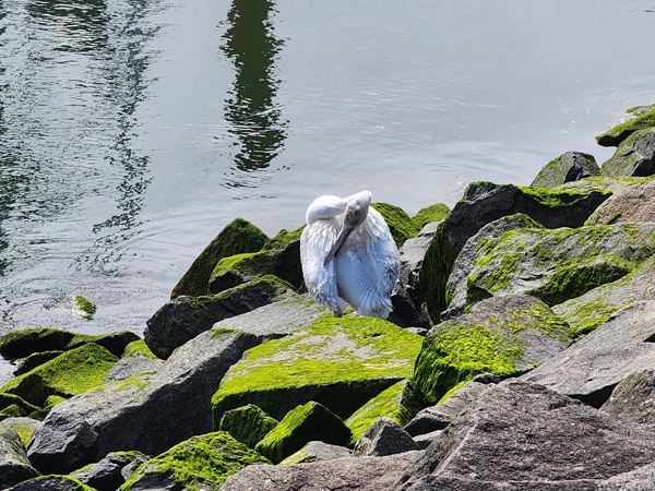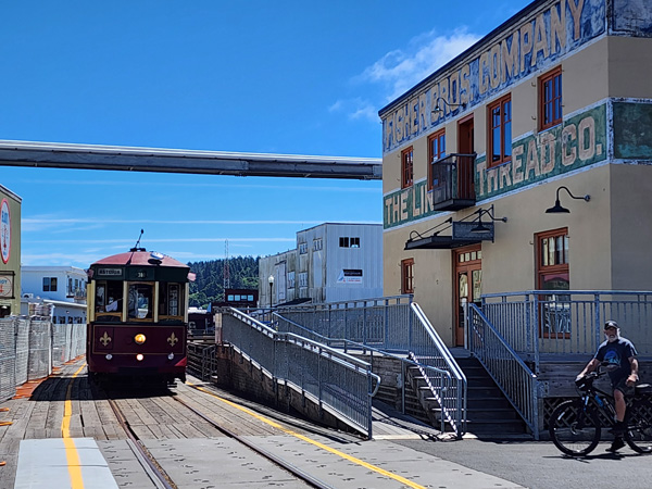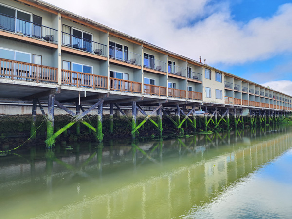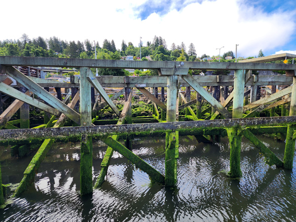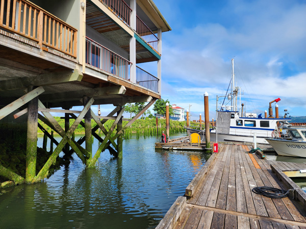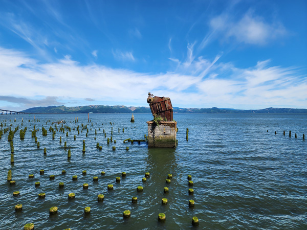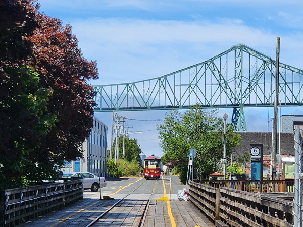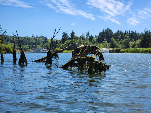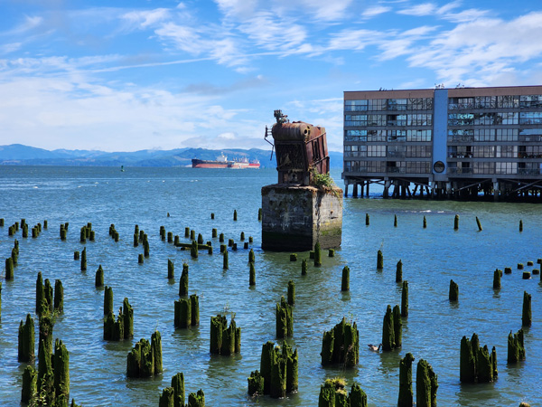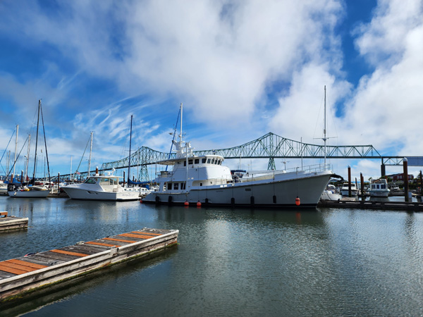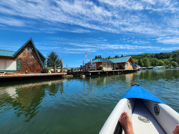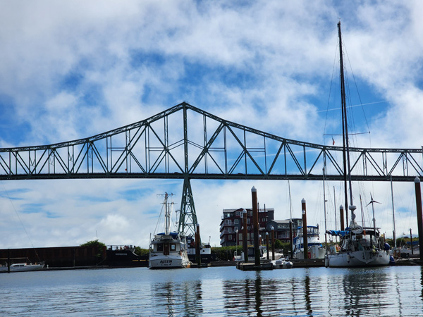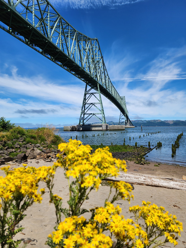 7/15-7/16/2023 A simple two-night getaway to Astoria. Just because. Last time I was here was three years ago, as part of a more extensive trip (page 17 of the travel section). I had noted to myself back then that I would like to explore the area more. Guess now is the time. I'm also bringing the kayak, as there are many places to paddle. I booked the same hotel as last time, the Astoria Riverwalk Inn, because I really liked its location on the marina, the views from the room, and easy access to everything. Plan is to drive down Saturday, stay Saturday and Sunday nights, then Monday morning drive to work (a 2-hour commute but doable). Heading west on 30, Sauvie Island is on the way so I stop for a swim at the beach. There is a large car carrier ship on the way out to the ocean.