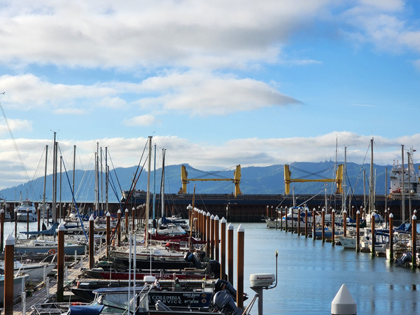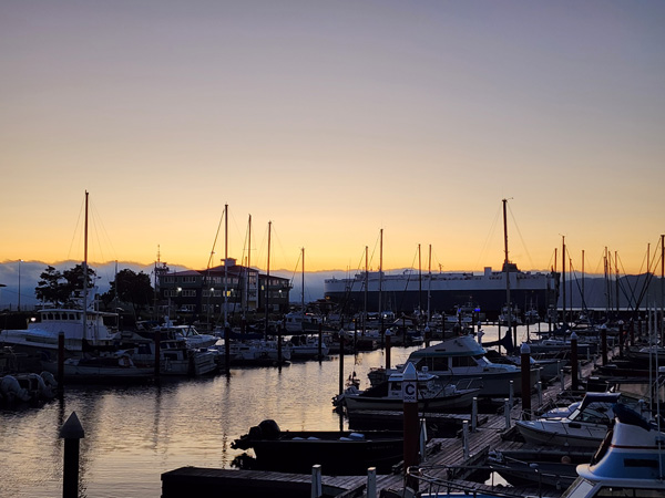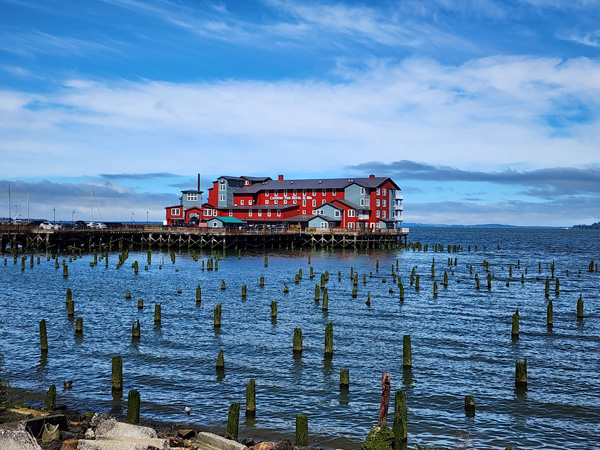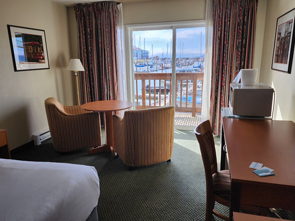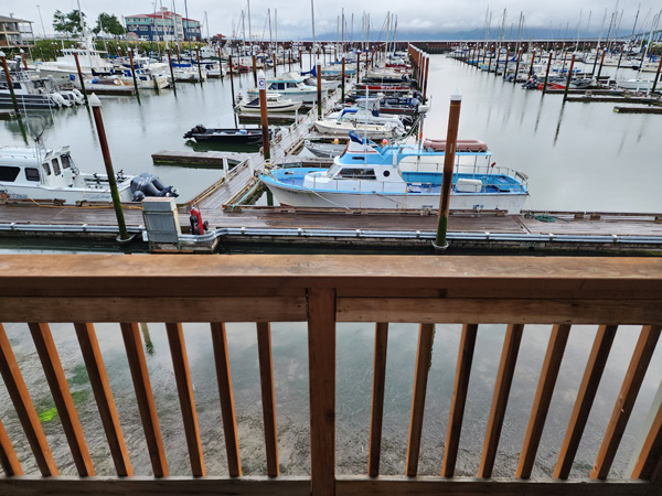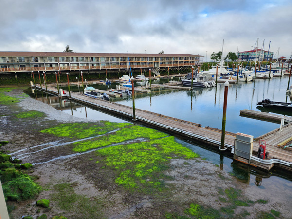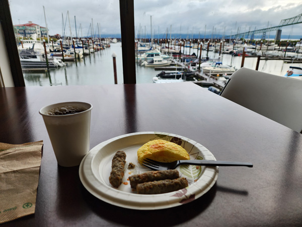 Hotel breakfast is served starting at 6:30am. It is modest but good. And the view is killer. It is low tide again.