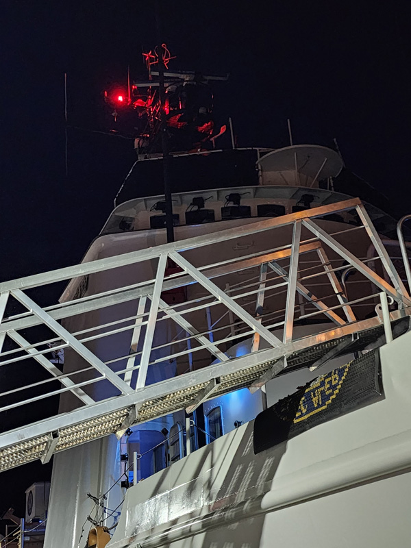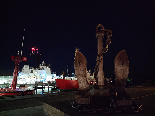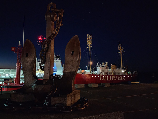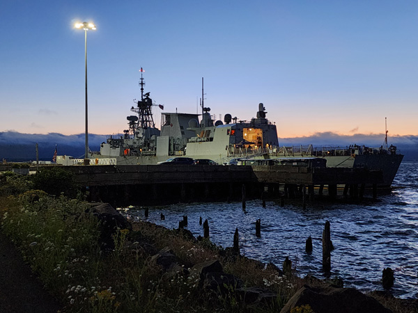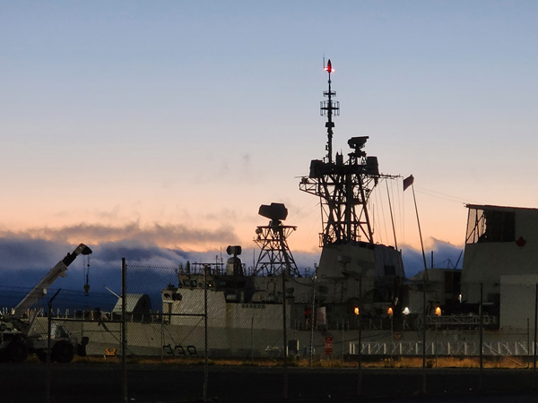 A bit of catching up on emails and other work, then heading out to see what the place looks like at night. There is a Canadian navy ship docked at the nearby pier.