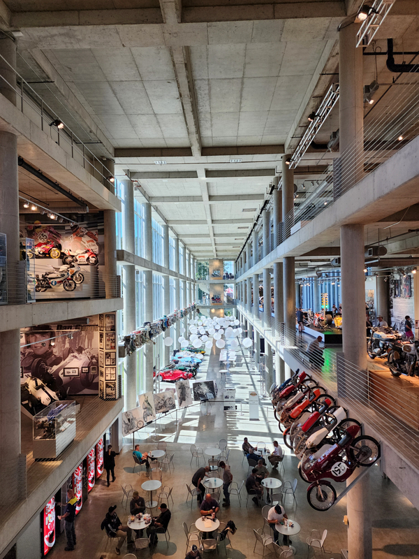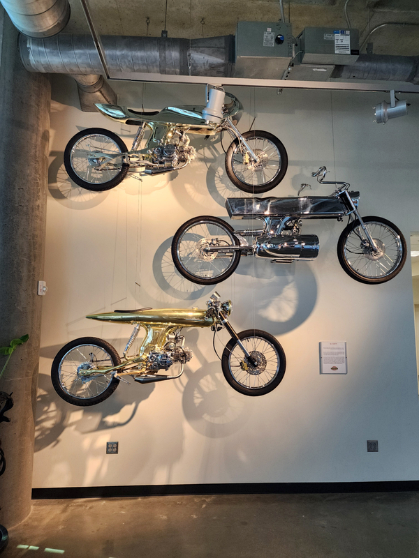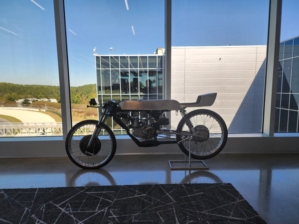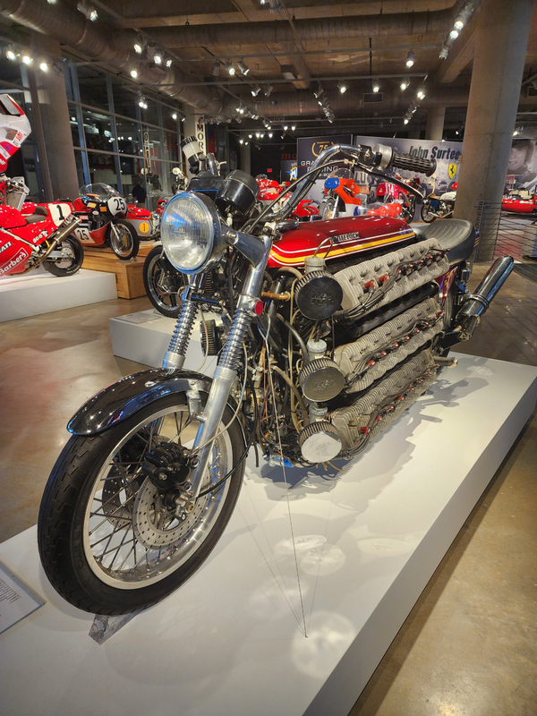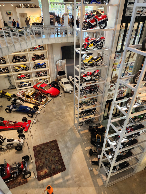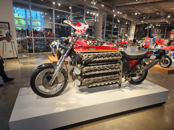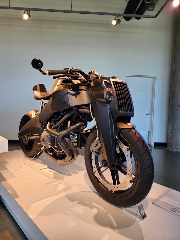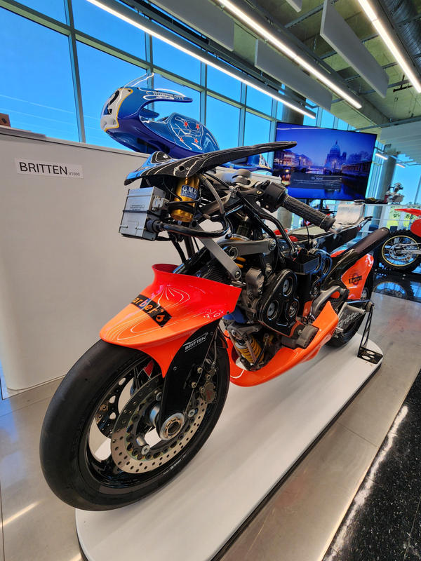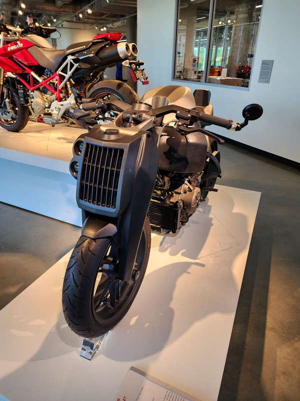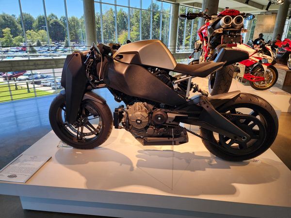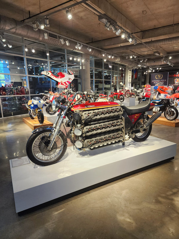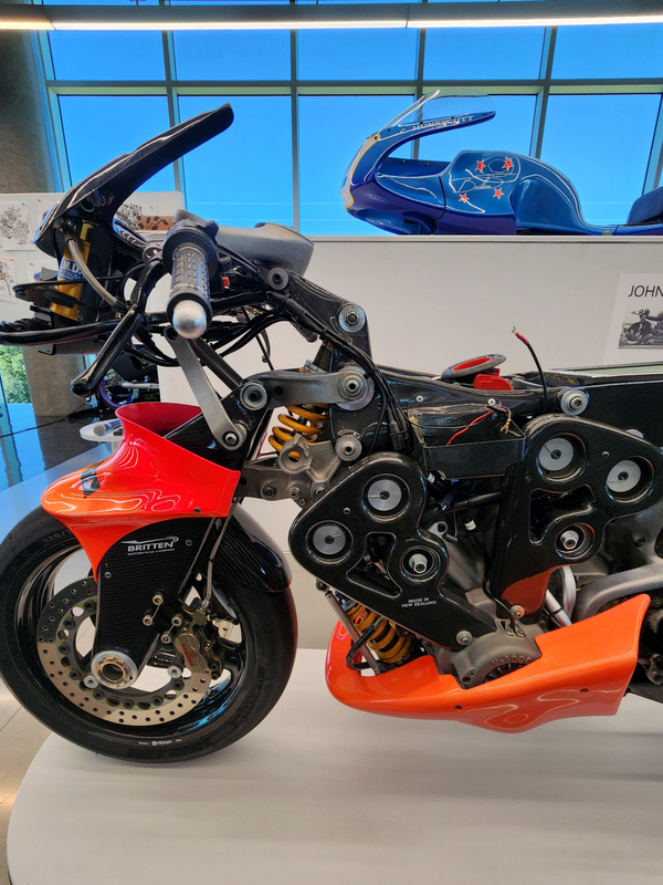There is another angle to the puzzle. A while back I connected with Brian Case, the founder of Motus motorcycles. We had discussed using his V4 engine in my D1, and he even came out to visit the shop. He was successful in putting his bike into production and delivered a few hundred bikes to customers (an amazing achievement, knowing full well what went into it). Unfortunately the funds weren't there to sustain and make it profitable, so Motus shut down. A while later Brian was hired by George Barber to run the museum, and, of all things, Brian then hired Pierre to head up the Advanced Design Center part of the operation. So, when two months ago I got an out-of-the-blue email from Pierre asking if I'd be interested in discussing projects, it would seem completely random. And maybe it is, maybe it isn't. Randomness is subjective, as I am fond of saying. He mentioned that the Vintage Festival mid-October would be a good time to visit if I were so inclined. Flights were booked then and there. I will update the entry with details later, but for now the pictures are worth thousands of words. Still, there are words to be said, so check back for those.