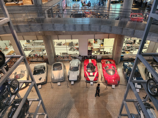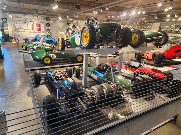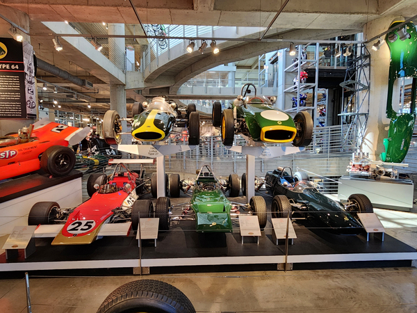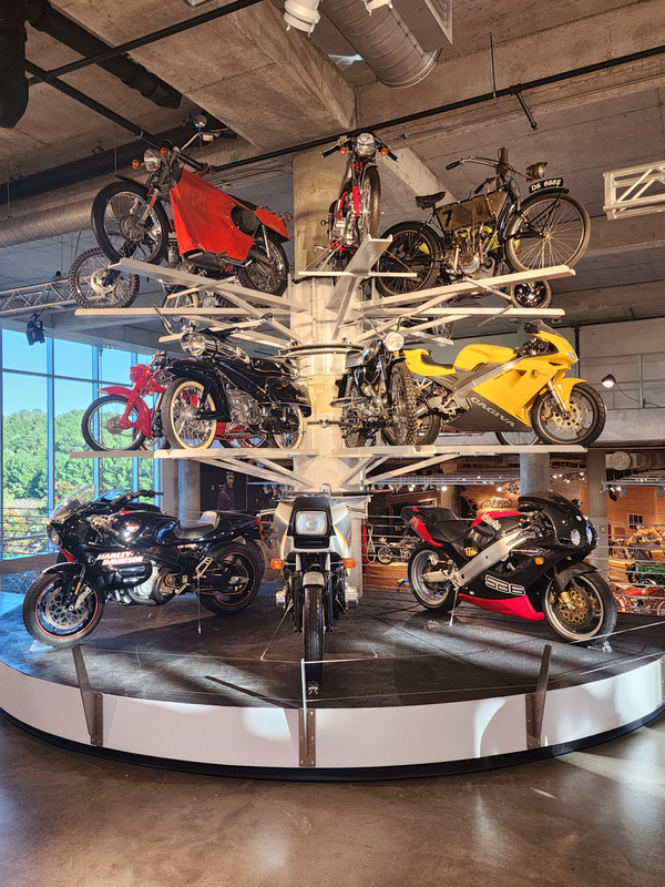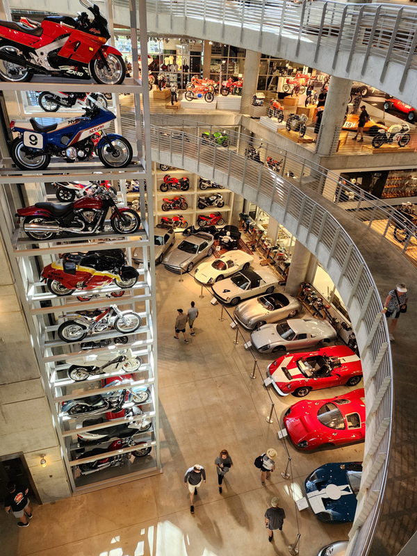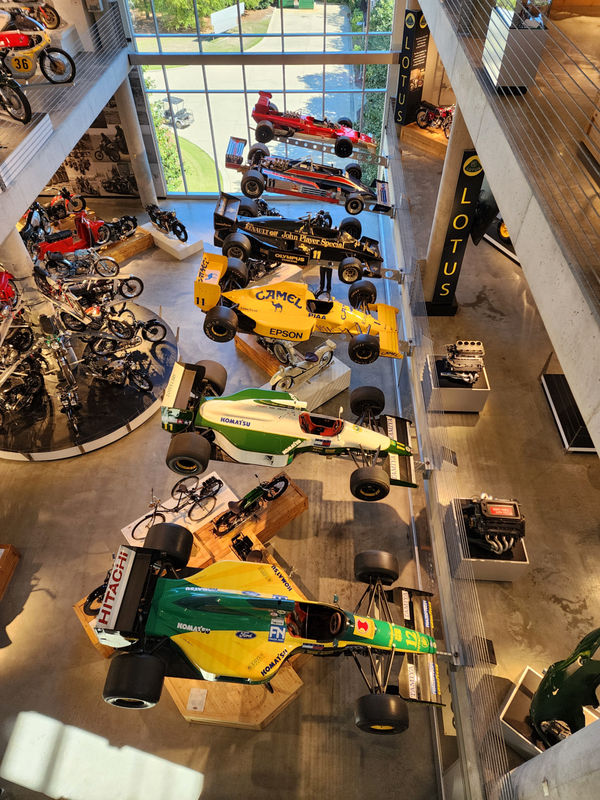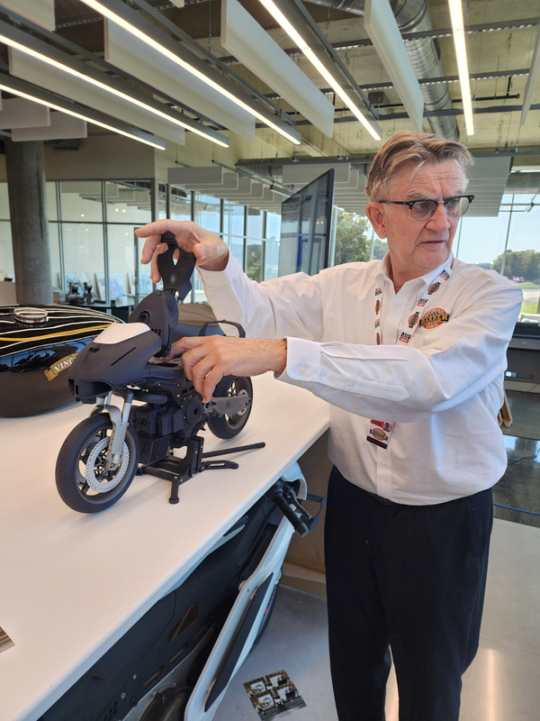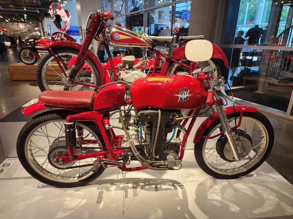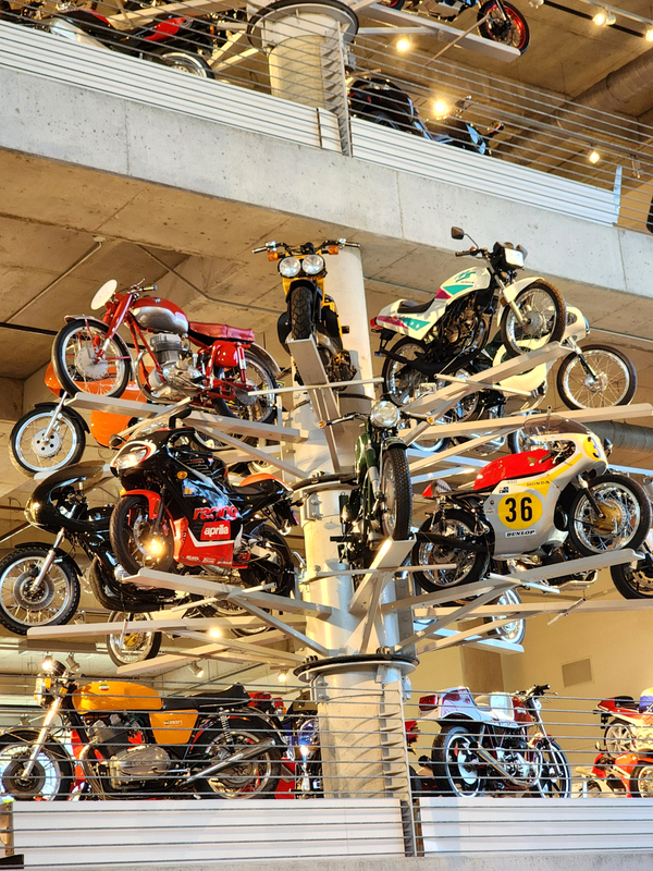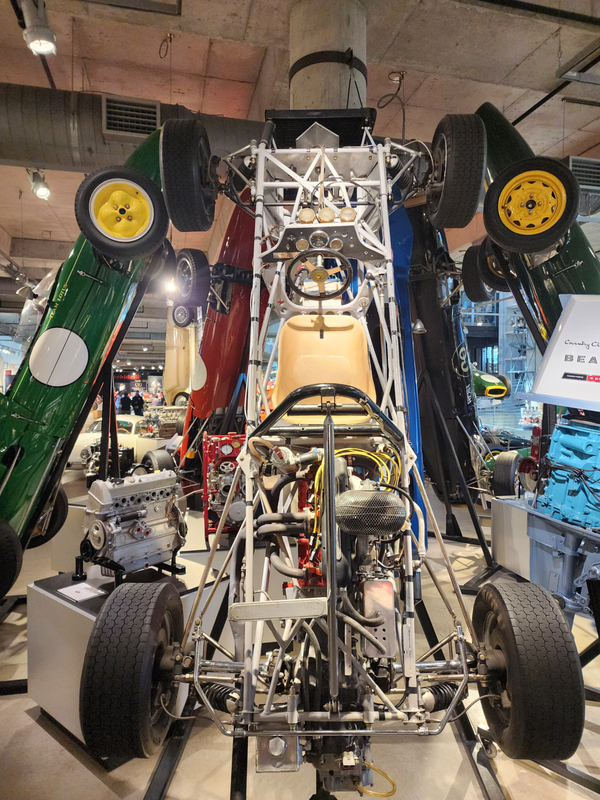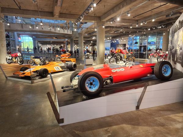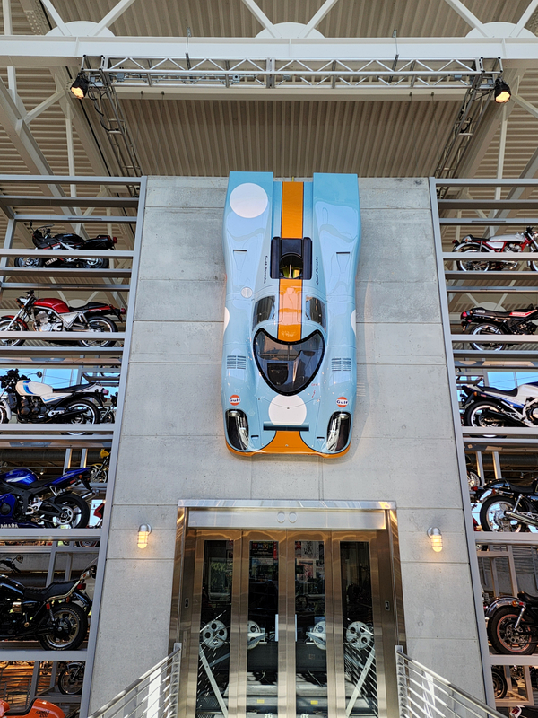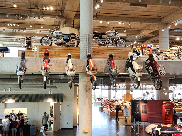There is another angle to the puzzle. A while back I connected with Brian Case, the founder of Motus motorcycles. We had discussed using his V4 engine in my D1, and he even came out to visit the shop. He was successful in putting his bike into production and delivered a few hundred bikes to customers (an amazing achievement, knowing full well what went into it). Unfortunately the funds weren't there to sustain and make it profitable, so Motus shut down. A while later Brian was hired by George Barber to run the museum, and, of all things, Brian then hired Pierre to head up the Advanced Design Center part of the operation. So, when two months ago I got an out-of-the-blue email from Pierre asking if I'd be interested in discussing projects, it would seem completely random. And maybe it is, maybe it isn't. Randomness is subjective, as I am fond of saying. He mentioned that the Vintage Festival mid-October would be a good time to visit if I were so inclined. Flights were booked then and there. I will update the entry with details later, but for now the pictures are worth thousands of words. Still, there are words to be said, so check back for those.
