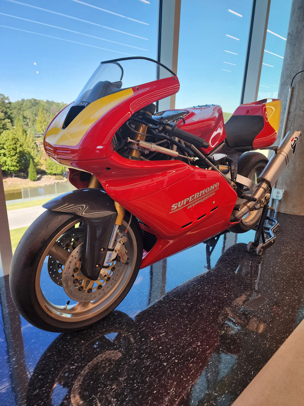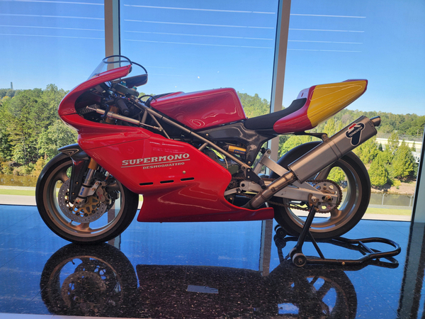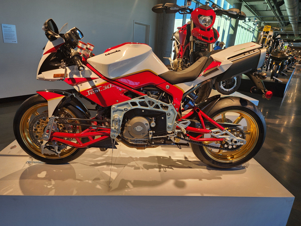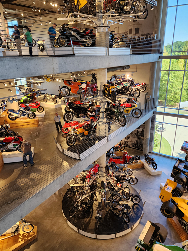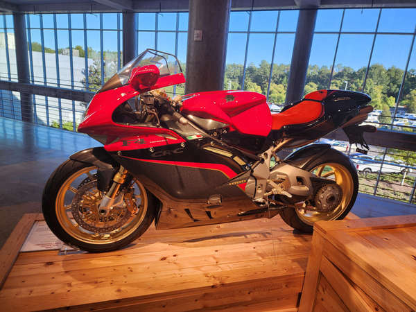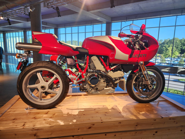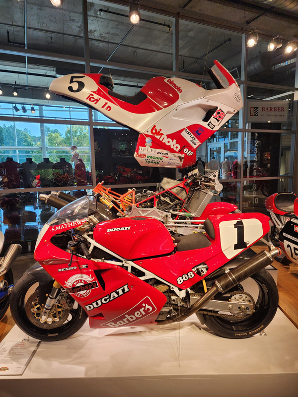 10/12-10/14/24 A trip to the Barber Vintage Muesum in Birmingham, and a side trip to the Space and Rocket Center in Huntsville. This was a very interesting experience, full of both history and surprises. A bit of background is in order. Those who have followed and/or read the blogs far enough back, know that I had a few Ducatis. And at some point had three of them as art in my livingroom. A 748, a Supersport SP, and a PaulSmart. The latter two were designed by Pierre Treblanche, who has a number of other notable bike designs to his name.