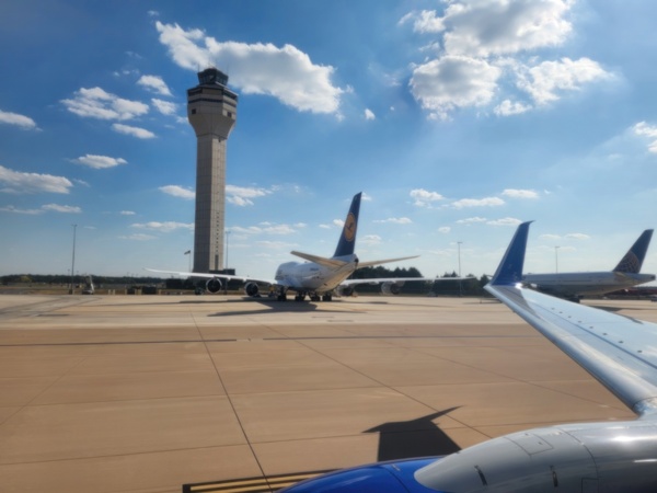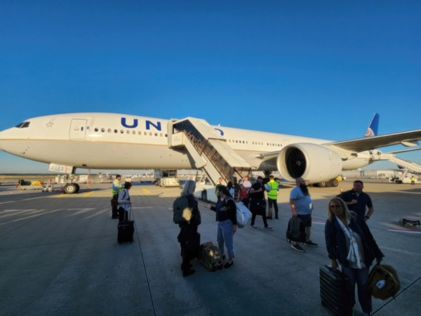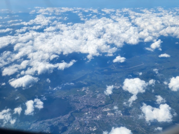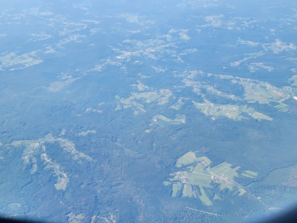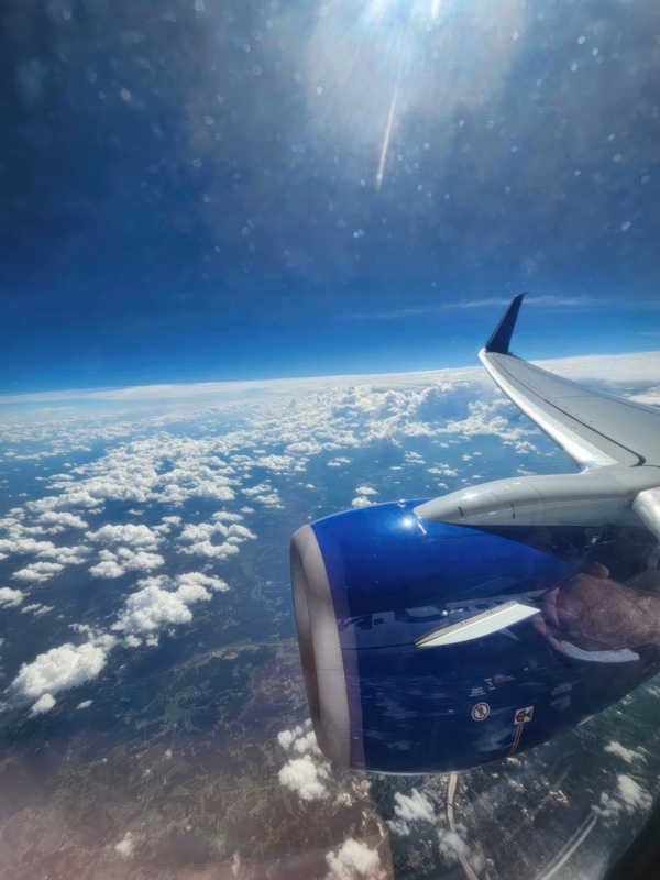 Once we deplane we take a bus to the terminal, walk to the next gate, get on the same bus which takes us to the same plane. Ah, makes sense. Next flight couldn't leave until we got there. Seeing different countries from above is also educational - it shows how cities/towns interact with the terrain and vegetation.