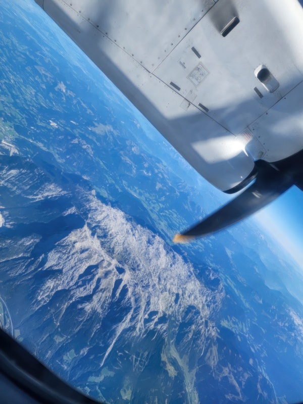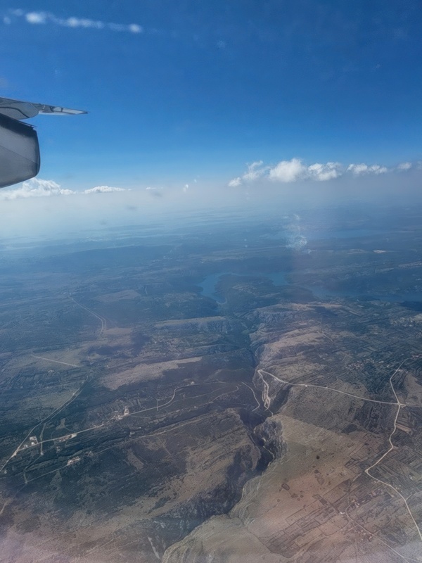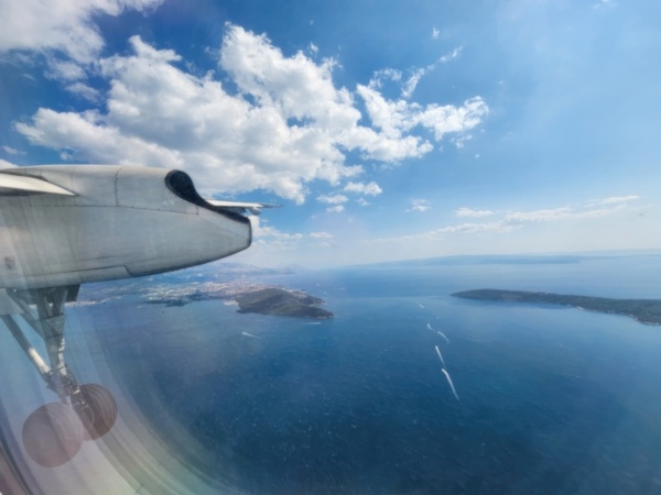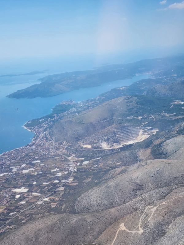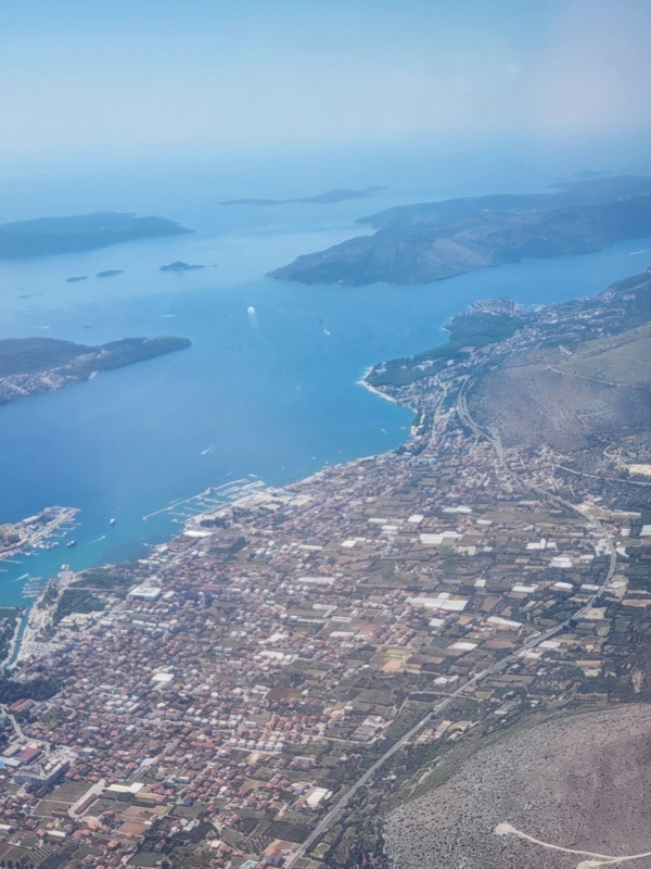 Day 1 - Transit and arrival in Split, first night in Trogir. The itinerary includes two nights' stay in Trogir, a historic town not far from Split where the cruise launches from. So the plan is to land at Split airport, find my way to Trogir, and see what's what. The views out of the window are varied and I may be repeating myself, but it is only in the last 75 years of the entirety of human history that such views have been available to ordinary citizens. 100 years of any human period. So I appreciate how privileged I am every time I look down on the planet from an airplane.