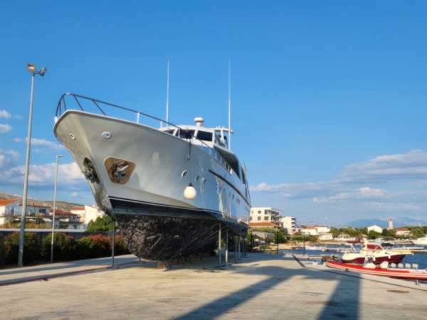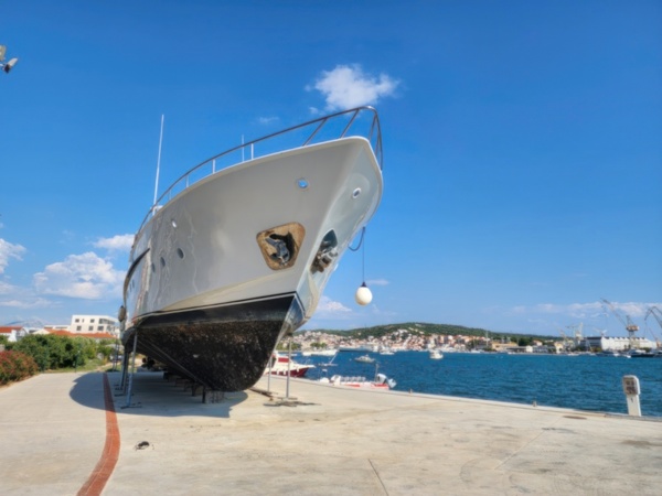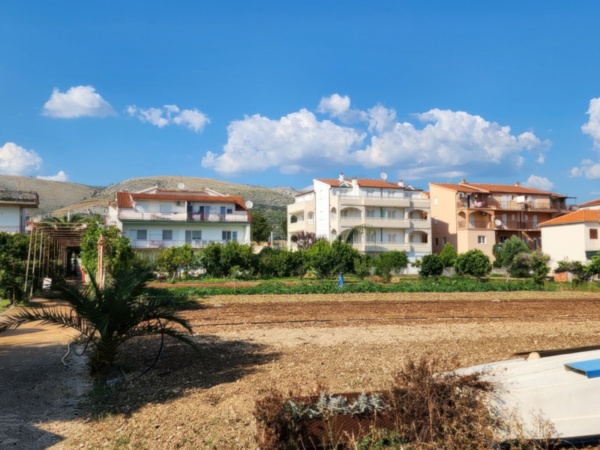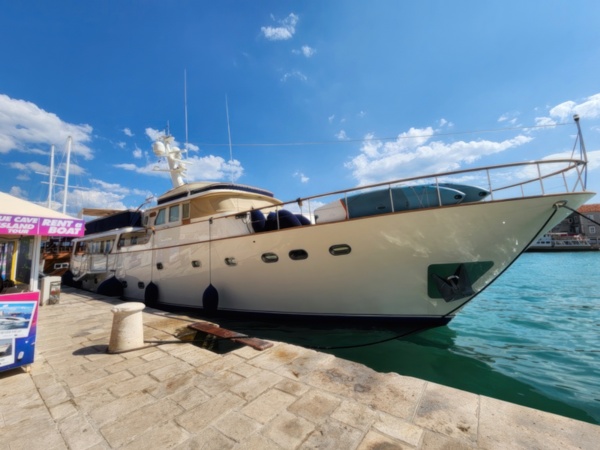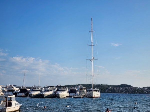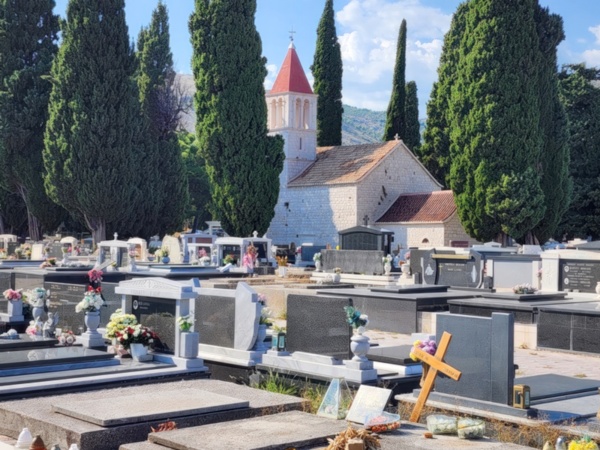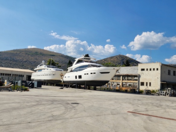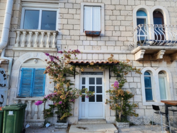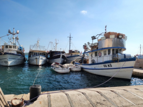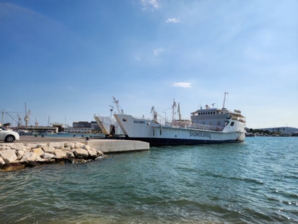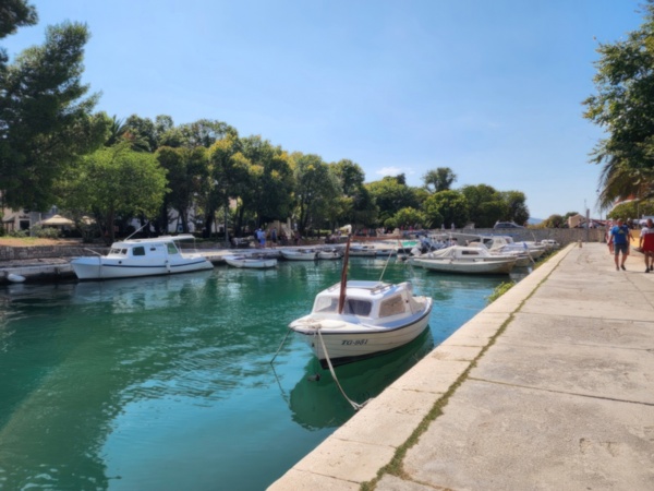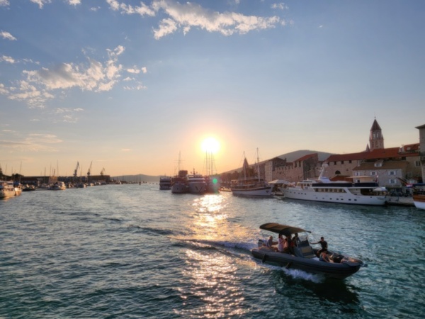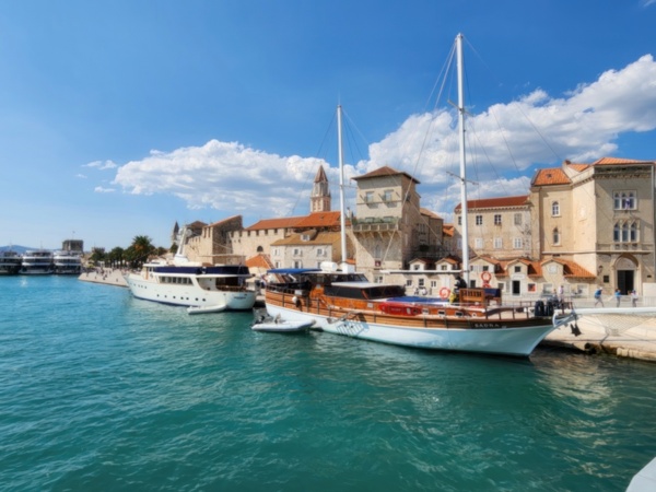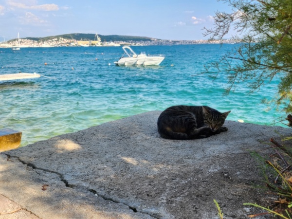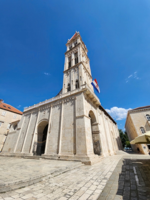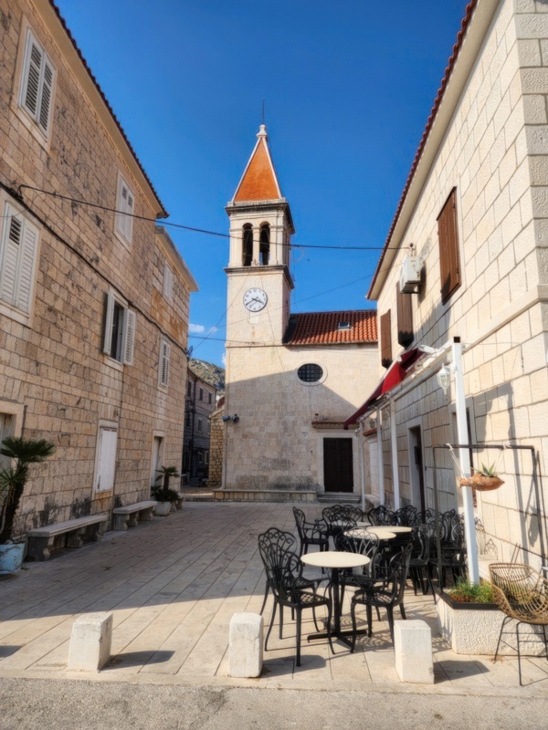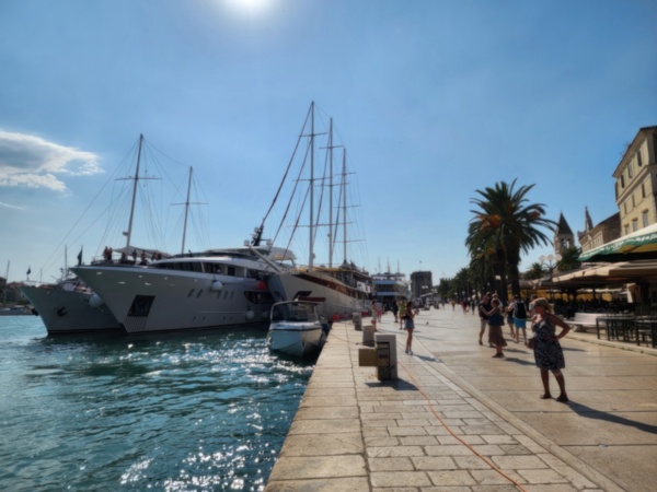 The Split airport is modern, compact, and uncrowded. Google tells me there is a bus to Trogir so I walk to the bus stop and take the 25 minute ride. It's a short walk from the bus terminal to the hotel, maybe half mile, that takes me through the old city. I'm glad that I travel with only a single backpack as luggage. Lugging multiple bags around would not have been much fun. Temperatures are in the high 80's.