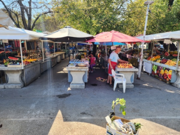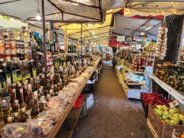 There is an open air market where I end up buying some prosciutto and a peach on the way back. Both turn out to be delicious.