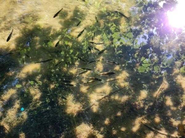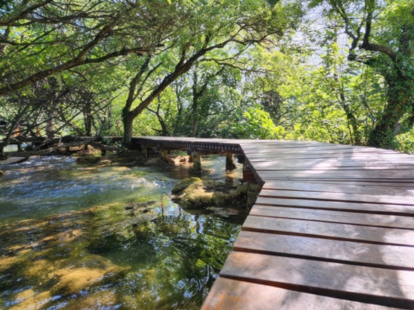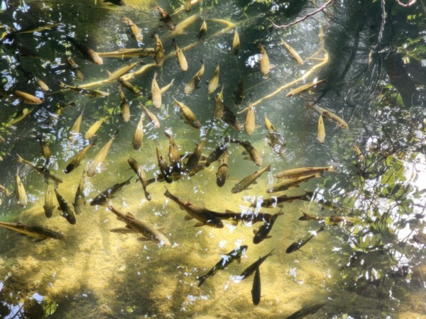 The road into the park is narrow and twisty, so it's alternating one way for buses (cars can travel any time in both directions). The river is full of fish. There are boardwalks set up through the park. I use my people removal superpower for the pictures, in reality it is busy with tourists.