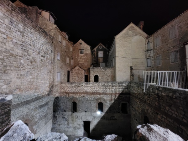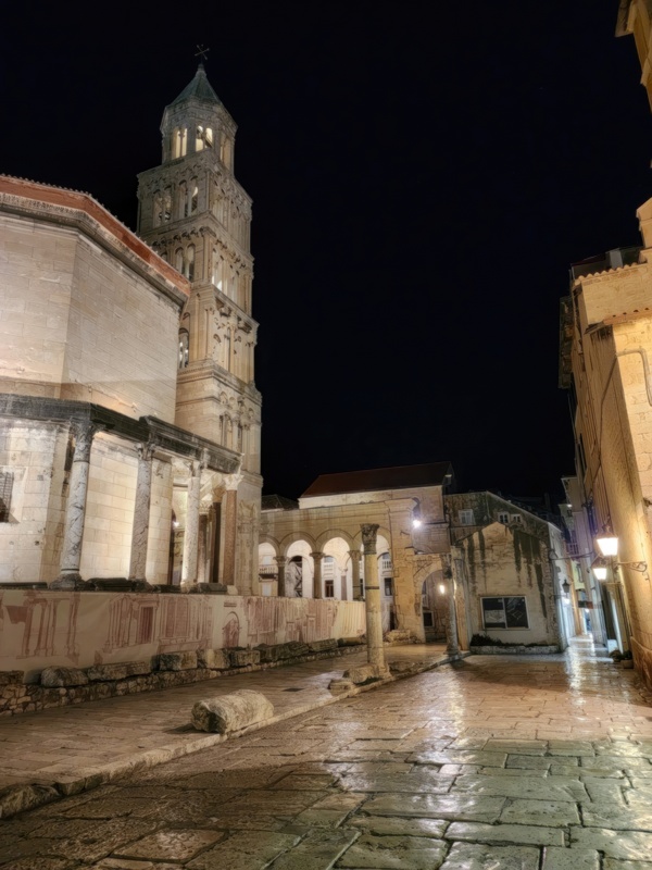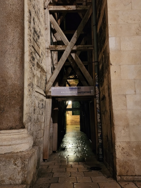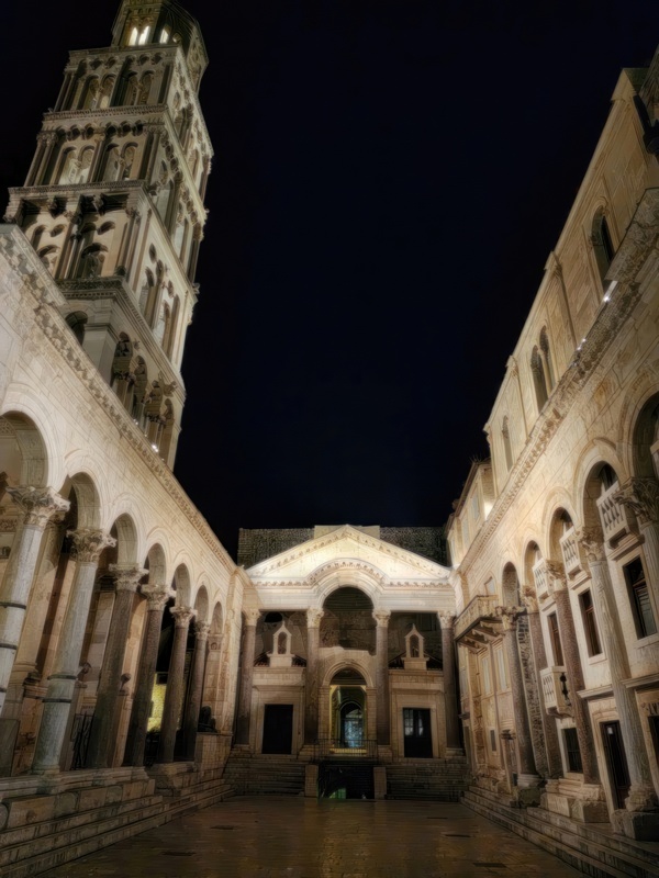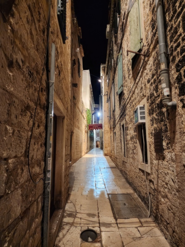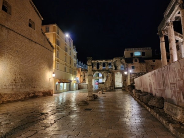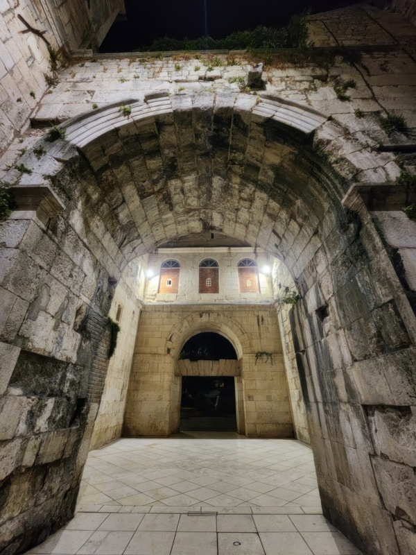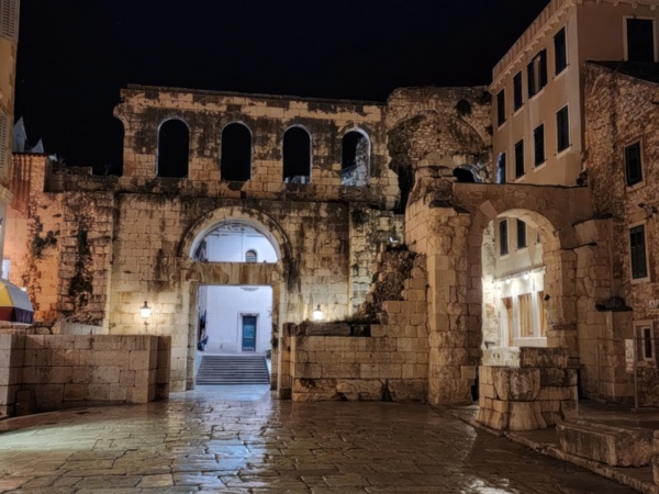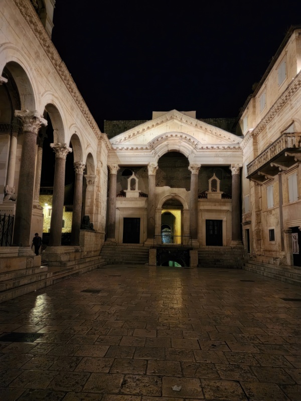 At 2 am I go walking around Diocletian's palace again, to get a different view. Being here all alone really lets me connect to all the history of the place. I stop many places just to imagine being here 2,000 years ago. The lights wouldn't have been on but that's beside the point.