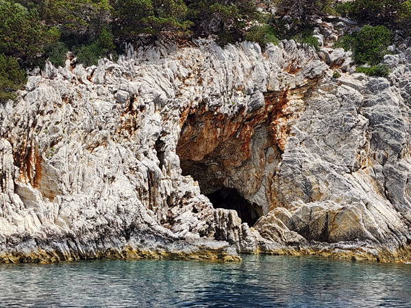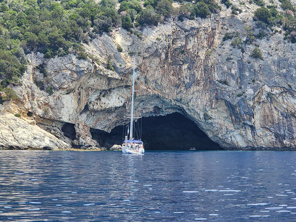 The cave is cool. It is too deep to anchor at the entrance (over 30 meters) so we drop anchor off to the side and swim in. It is scenic inside, I shold have taken the phone with me for pix since I do have a waterproof case with lanyard. It is what it is, I enoyed the experience and you'll just have to take my word for it. Or visit it yourself.