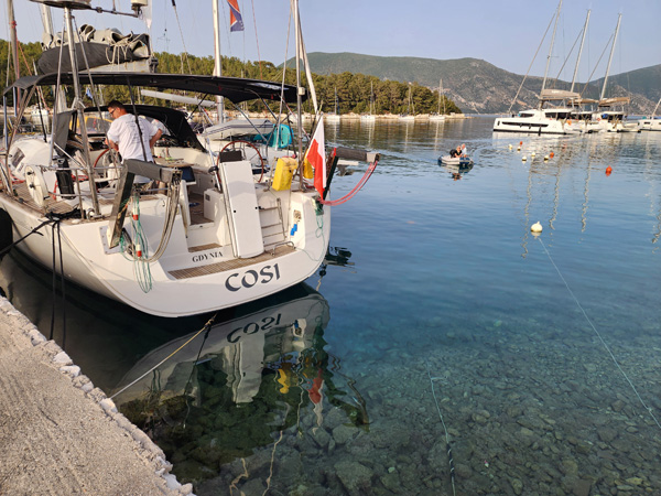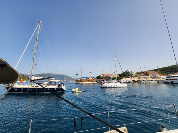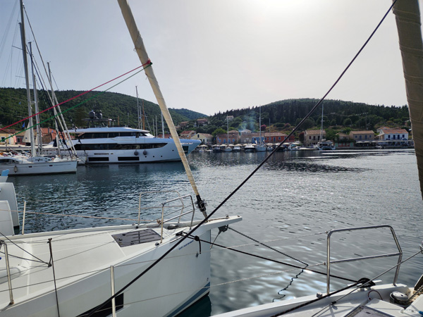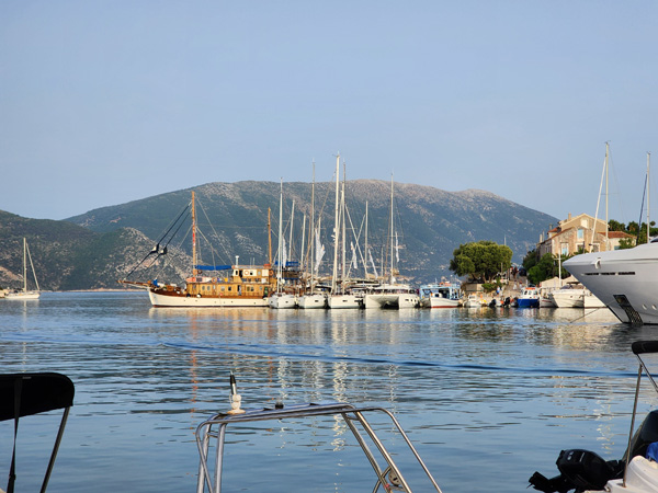 Today's destination is the village of Fiskardo on Ketalonia. We will stop at a cool cave along the way, and maybe another spot. In the morning the wind is calm and we are mostly motoring.