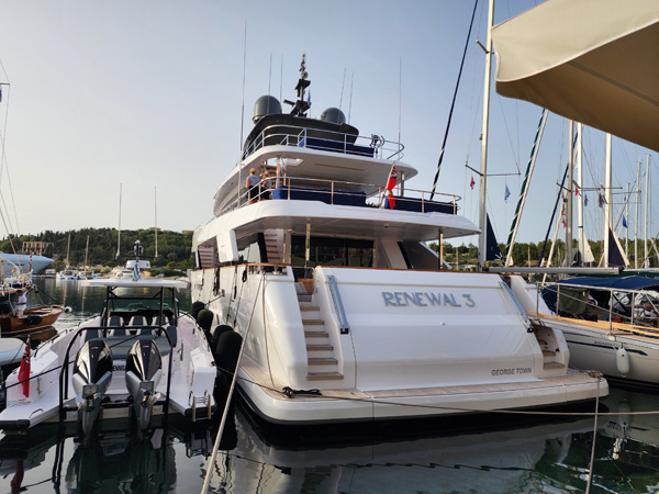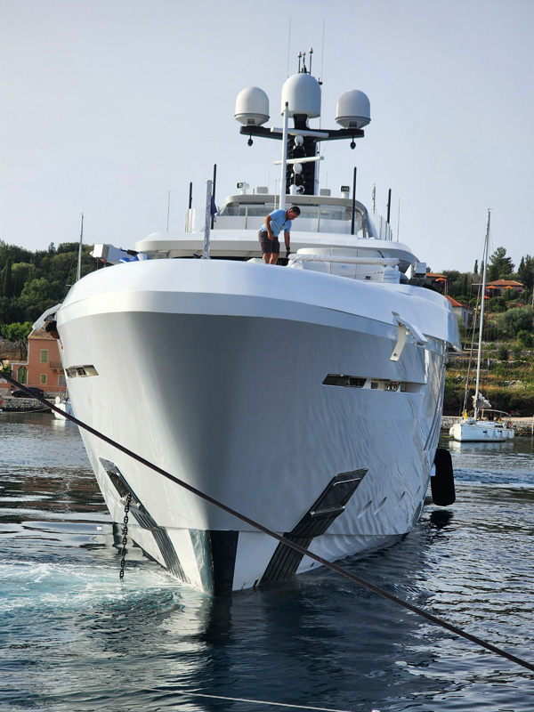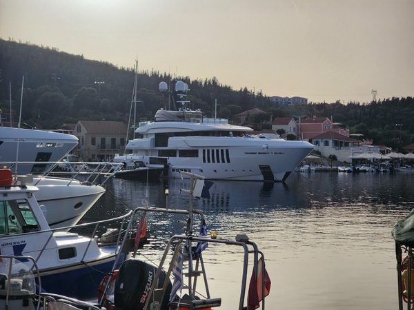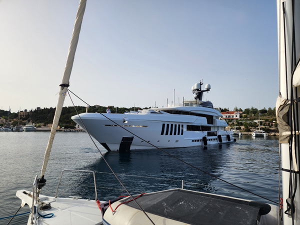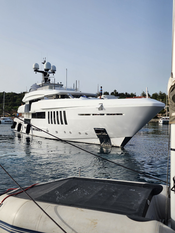A big yacht pulls in and anchors in the harbor. I used to be impressed by these but these days I just see them as hugely wasteful and not the kind of experience I would want. I can honestly say that I wouldn't own one even if someone gifted one to me for free, maintenance and fuel included. But some of the engineering is cool.