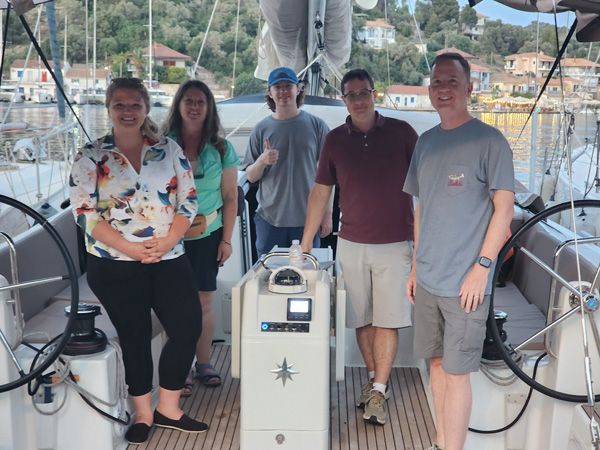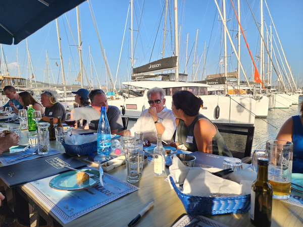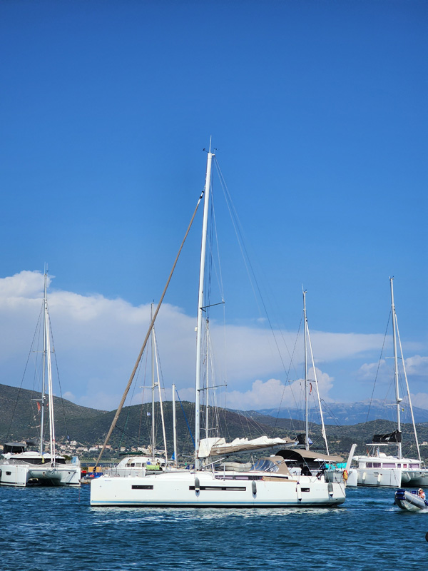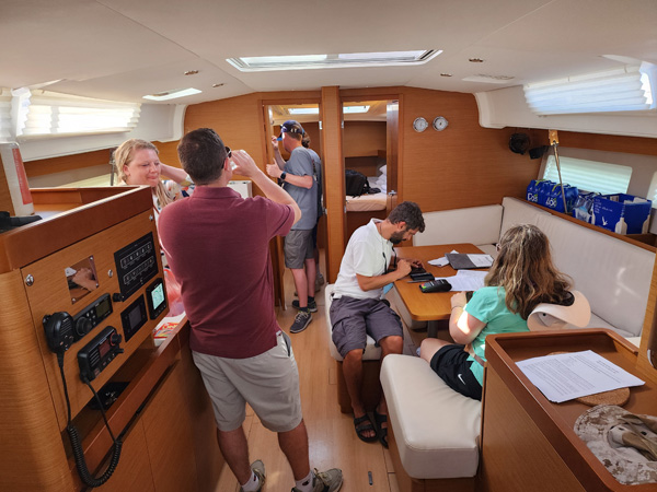 This blog is split by day, like some earlier ones. Click on each day's link for the full entry. Scrolling through pix on this page will give you highlights. 6/4-6/15/2024 - A sailing trip to Greece Time for another trip - this one to Greece. A birthday present from my dad (thank you!). It is my first visit, so country #36 for me. This builds on my ASA 103/104 certification sail in the San Juans a year ago (see earlier post on page 10) and the first flotilla sail. Like the Croatia mini-cruise last September, this sail is organized by Med Sailing Adventures. There are six boats in all. Shortly before departure from home we receive the boat assignments via email - I'll be on Bellatrix, a Jeanneau Sun Odyssey 490 monohull. Slightly bigger version of the boat I sailed on last June. Jean and Mila, the husband and wife team who run the adventure, will be on another boat. On my boat besides me there are two couples - Anthony and Lindsay, and Randy and Tessa also bringing their teenage son Owen. So six people total. There are five berths and five heads total, although the 'skipper's cabin', just aft of the anchor chain locker in the bow, is merely a hole to sleep in, with a toilet at the bottom of it. The other four cabins are quite nice. The boat is clearly designed for chartering, and this arrangement allows a hired skipper to be separate from the guests if needed. Originally the hired local guide for the flotilla, Spiros, was going to use the skipper's cabin but he ended up on another boat. On this sail the skipper is Antony, I'm just crew. Which is an ideal way to keep learning and working up to maybe eventually skippering a boat myself. This time, it is nice to not be responsible for planning or navigation. Just a lot of winching to manage the sails, dealing with the anchor, and handling the docking lines. Of course all this info, while emailed out well in advance, I only learned the night before getting on the boat. I knew I wasn't in charge so had the luxury of simply showing up and seeing what happens. Which is how I do. Day 1 - Transit and arrival in Athens, Acropolis, other sites - Full day link