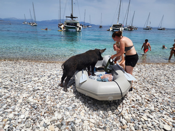 Day 8 - Sail to Kalamos, wild pigs on a beach, and 'white dinner' - Full day link