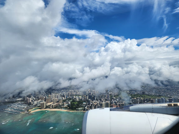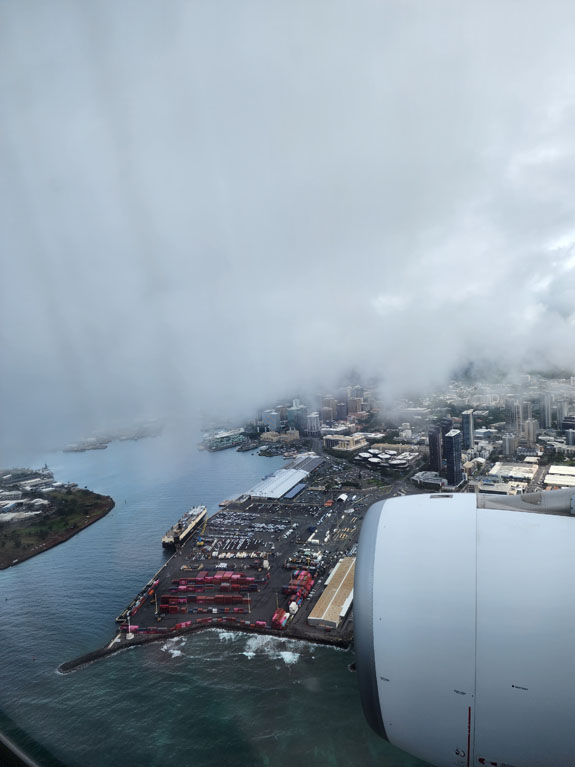 On-time arrival means my layover is more than sufficient and stress-free. I did have to check in at the counter, and there is a bit of walking with my two carry-on bags, but no issues. I'm flying Hawaiian, but at an adjacent gate is a KAL 747 that is going to Seoul only a few minutes earlier. Don't see these awesome planes carrying passengers much anymore, so I had to take a picture.