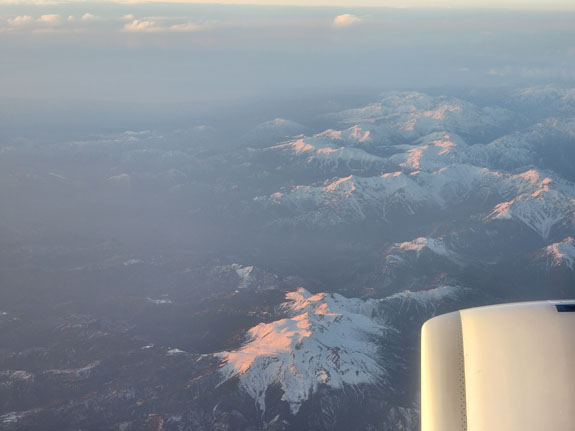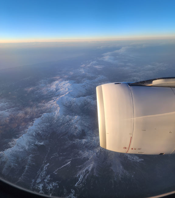The second leg is a ten hour flight due to the headwinds and the route takes us over Japan just as the sun is setting.