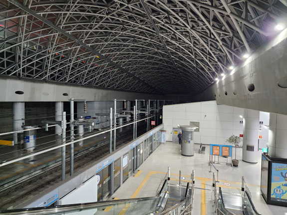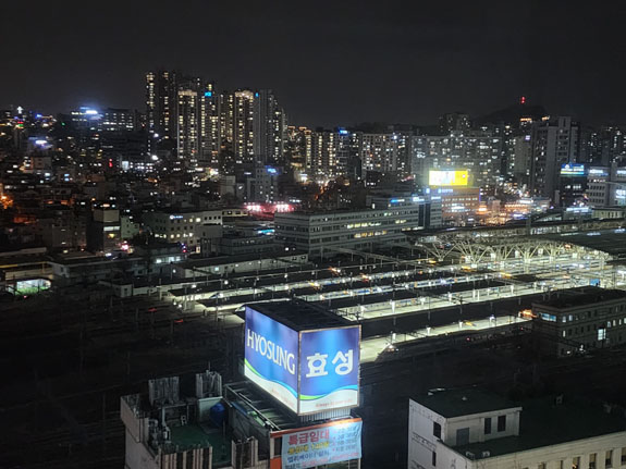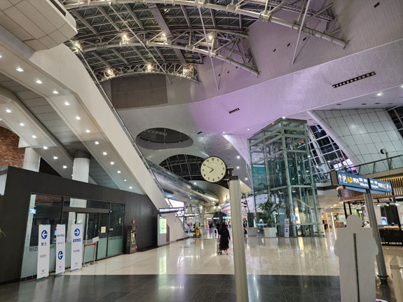 Arrival is also on-time and uneventful. Having only the carry-on bags I simply walk through immigration and customs, and find the train station, exchanging $50 for Korean Won along the way.