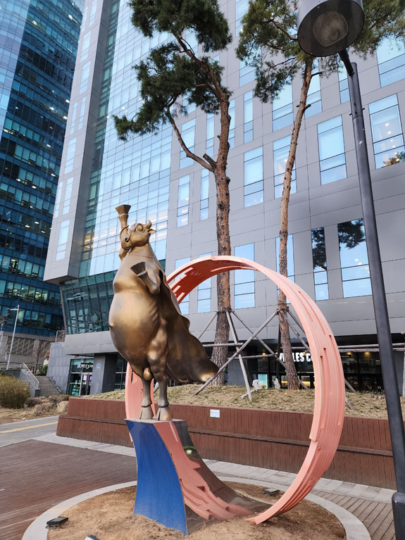 Google suggests I take two buses (I later figure out it could have been just one with a slightly longer walk). It's a bit confusing at first but I'm learning. Outside is a somewhat odd sculpture.