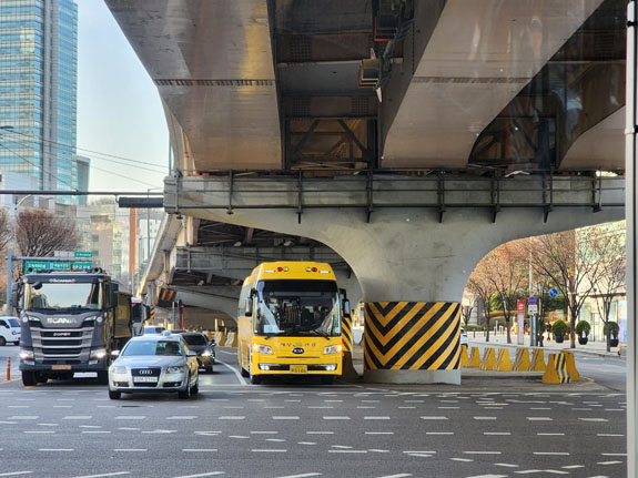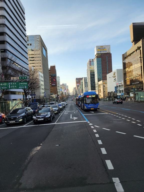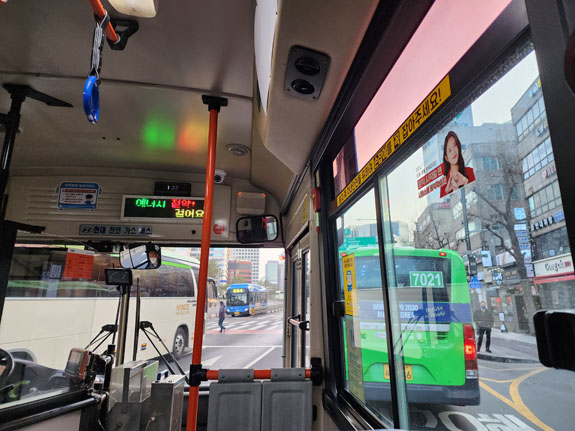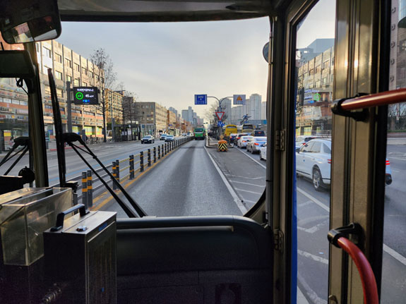 Google is a bit unclear about when to get off the first bus, I jump off at the next stop because the GPS dot is close. Then second-guess myself, then figure out that it was the right place afterall. Eventually I fiind the second bus and the rest of the ride is uneventful. I grab a seat upfront and watch the scenery roll by. On major streets, there are dedicated bus lanes in the middle.