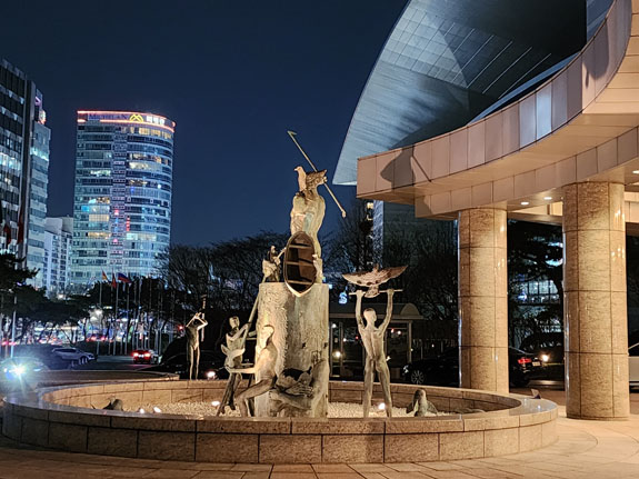 Arriving at the convention center just before 9 am, I try to get my bearings. I am quickly discovering that surprisingly few people speak any English here, even though there are English signs most places. I guess I got spoiled in Portugal and Spain where nearly everyone, young and old, can speak the Internet language. But I suppose Korean is much more removed from English than Spanish and Portugese are, so it's harder to jump the gap. Registration doesn't open till 10 and presentations start at 9:30, but fourtunately that happens in a room that's outside the main pavillion. I find the room and get ready. I am the 24th to give a four-minute presentation. I focus on what the audience would care about - the fact that the many problems facing the industry at larger are solvable today, through a combination of technology and collaboration. And that I have the technology to enable both the solutions and the collaboration. It seems to work - afterwards, several people gave unsolicited praise and I seem to have struck a chord with at least a couple. This gave me openings to do more extended pitches to several key people at the evening reception - I will need to folow up on return, but this is much better than last time. Learn every day. As for the tradeshow itself - it's like any other tradeshow. Bunch of people with badges meandering about through an overload of booths that all look the same after the first five minutes, despite much effort and expense to try and stand out. But it's been that way always - I remember Comdex was like that 30 years ago. And CES, and SEMA. And yet these things go on (not all of them). Anyway, business part accomplished and it's time to head back. Instead of the bus I take the subway, to see what that's like. Clean and efficient. Takes about the same 45 minutes with one line change.