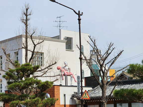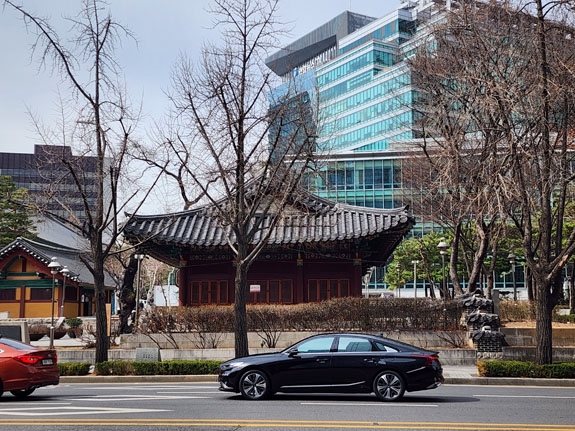 Next destination is the Gyengbokgung palace although I probably won't go inside just yet. One of the ways I choose where to go is just pull up Google maps and see what's on there nearby. This happens to be it. A variety of architecture and art along the way.