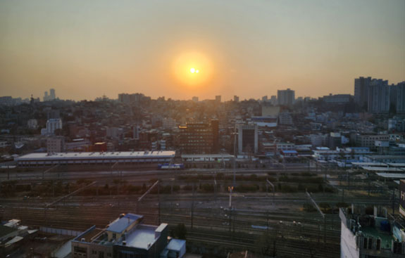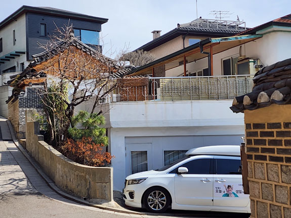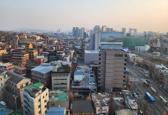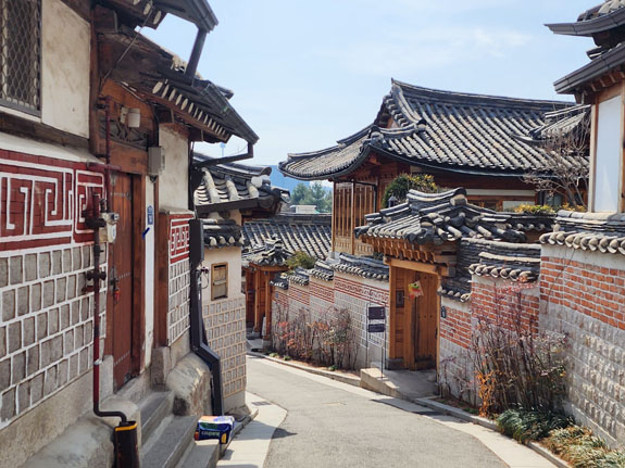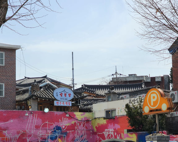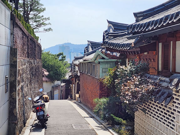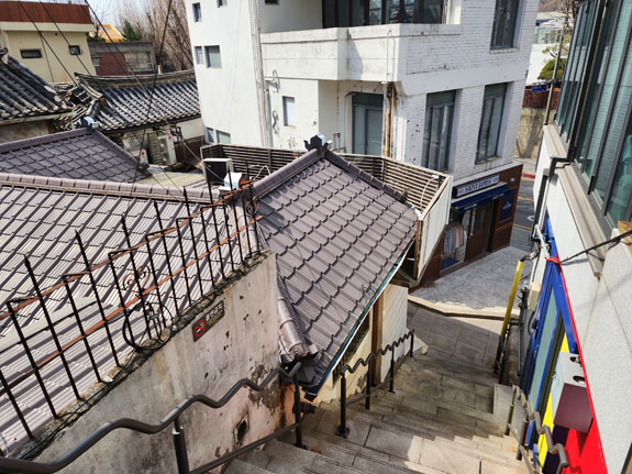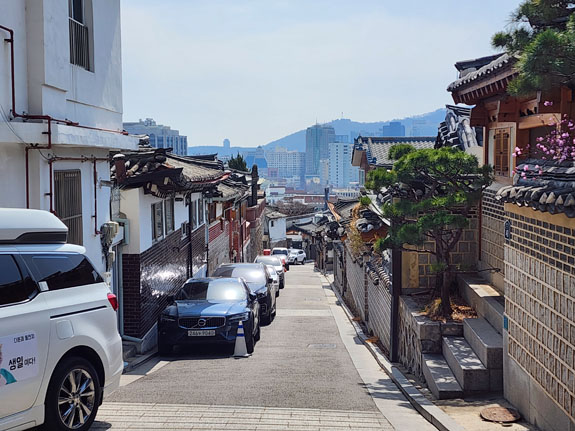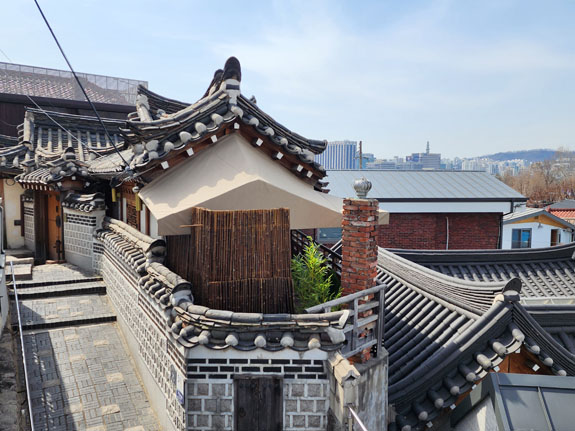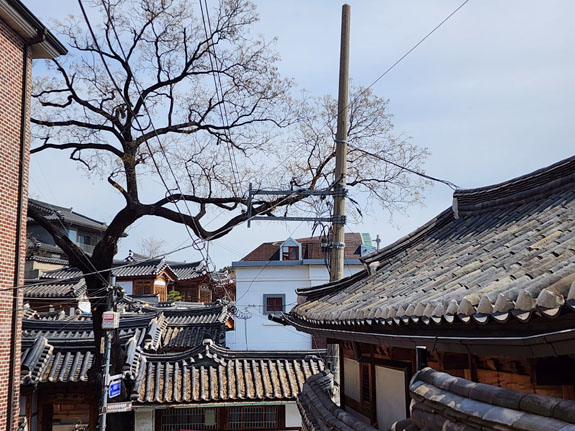 Day 4 - More roaming about Seoul On a friend's suggestion, today's first destination is Bukchon Hanok Village. A subway ride and a bunch of walking. Over here, Google doesn't understand streets as far as walking directions go. It just plots a straight line from the last transit stop to where you need to be. So one has to exercise some judgment/intellingence. Or do a lot more walking. The morning view from the apartment is spectacular as ever.