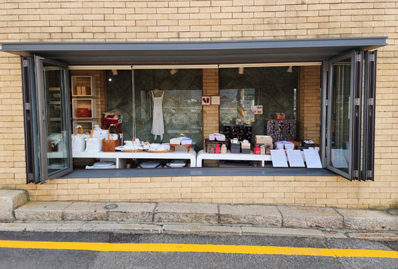 To the point, a row of shops selling art supplies.