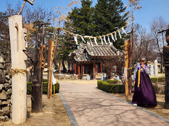 As I walk (limp? foot bothers me, ugh) closer to the village the environment progressively changes. I start seeing people in traditional costumes which at first is puzzling but cool.