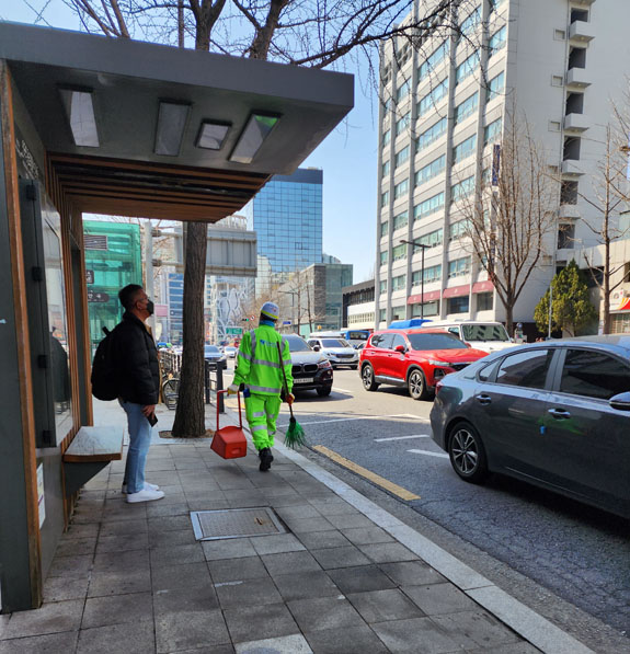 At least a partial hint of how the city is kept so clean - there are people walking around and picking up litter. Streets and subways. You don't see them often, but they're there.