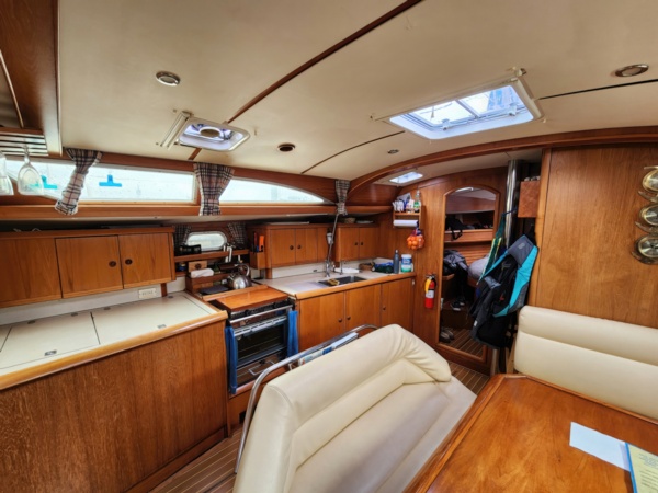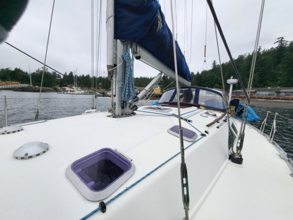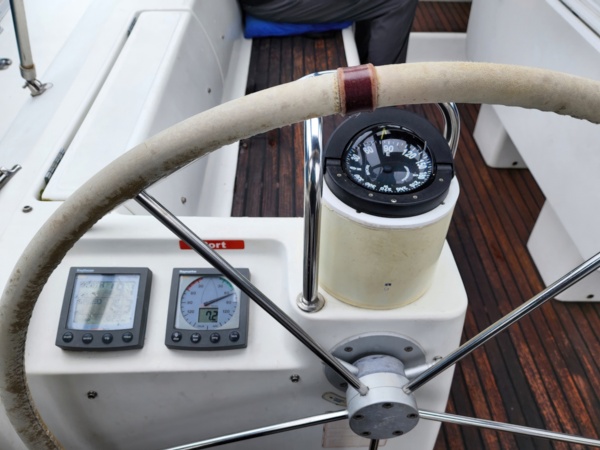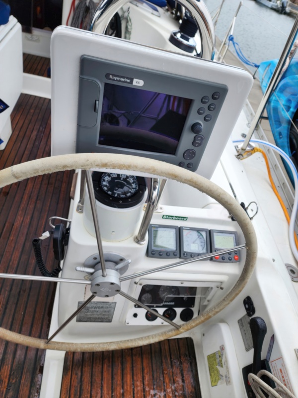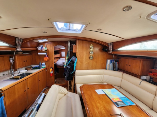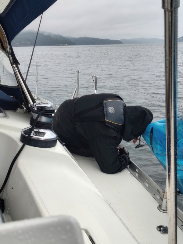 In talking to Capt. Rod I learn there will be two other students. There are two kayaks for our use, so I ask if it's ok to bring the inflatable. Sure. So I do. There is an email listing what I need to bring and what to expect. I don't fully read it. How human of me. There are also two books to study, for the two written tests. I scan them. To be fair, I'm just trying to change the world in real life, so gotta pick my fights :) Finding the boat at the dock, I'm the last to arrive. It'a s Jeanneau SO 45.2 (a 46' hull). There are three staterooms - one in the bow, claimed by Capt Rod and his wife Christina, and two aft - claimed by the other two students. So I'm left with the convertible bed in the livingroom. No problem. Each stateroom has its own head (marine toilet/shower) so I get to share one of those. Workable. Still beats tent camping, and I was fine with that many a time. Far more luxurious than the 22'-ish daysailers I've overnighted in before. Also we're advised that we don't shower onboard because mildew. Not a problem for me, memories of Burning Man and other adventures.